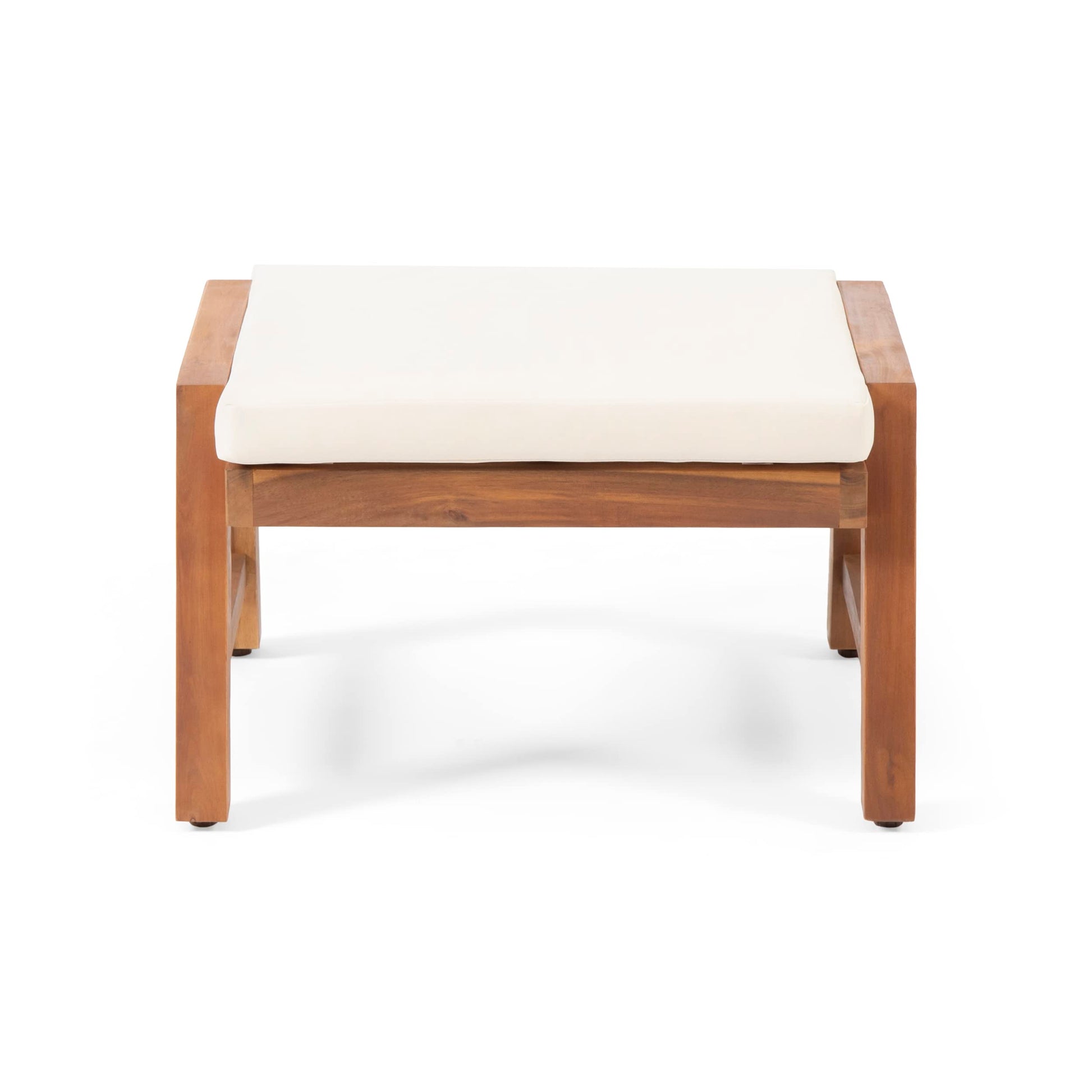 Each ottoman features a plush cream-colored cushion that provides exceptional comfort while complementing the rich brown tones of the natural acacia wood. The weather-resistant construction ensures long-lasting performance in outdoor environments, while the timeless design seamlessly integrates with various décor styles from modern to traditional.