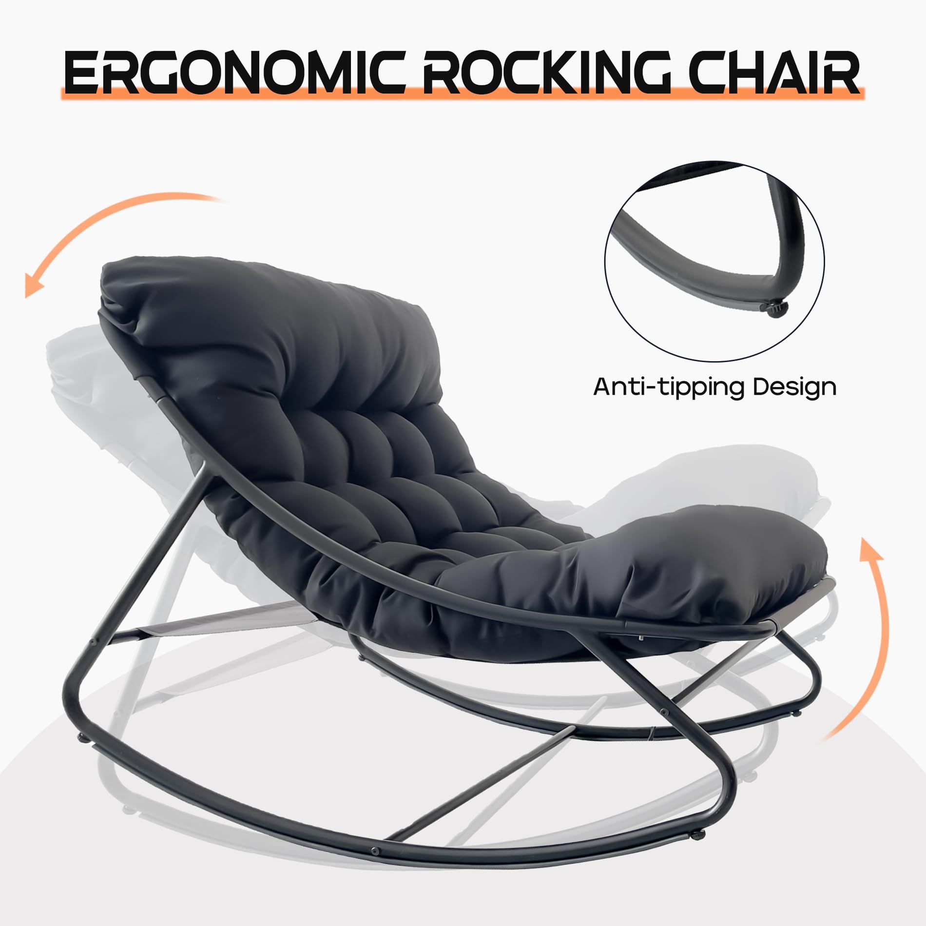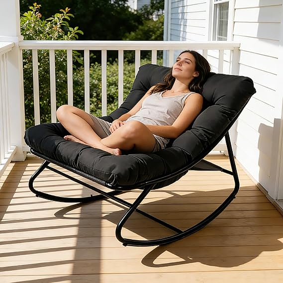 Experience ultimate relaxation with this oversized outdoor papasan rocking chair. Designed for modern comfort and style, this cozy lounge rocker features a spacious egg-shaped seat that cradles you in comfort while the gentle rocking motion soothes away stress.