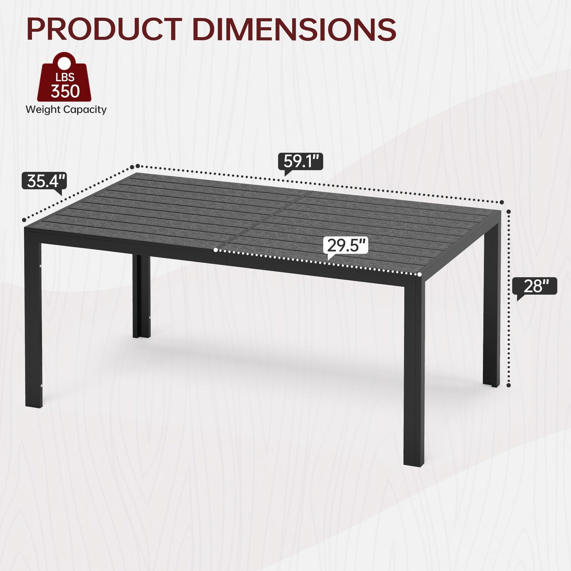 Transform your outdoor space with this spacious rectangular dining table designed for six. Crafted with premium galvanized steel and a sleek wood-like HDPE tabletop, this all-weather table combines durability with timeless elegance.