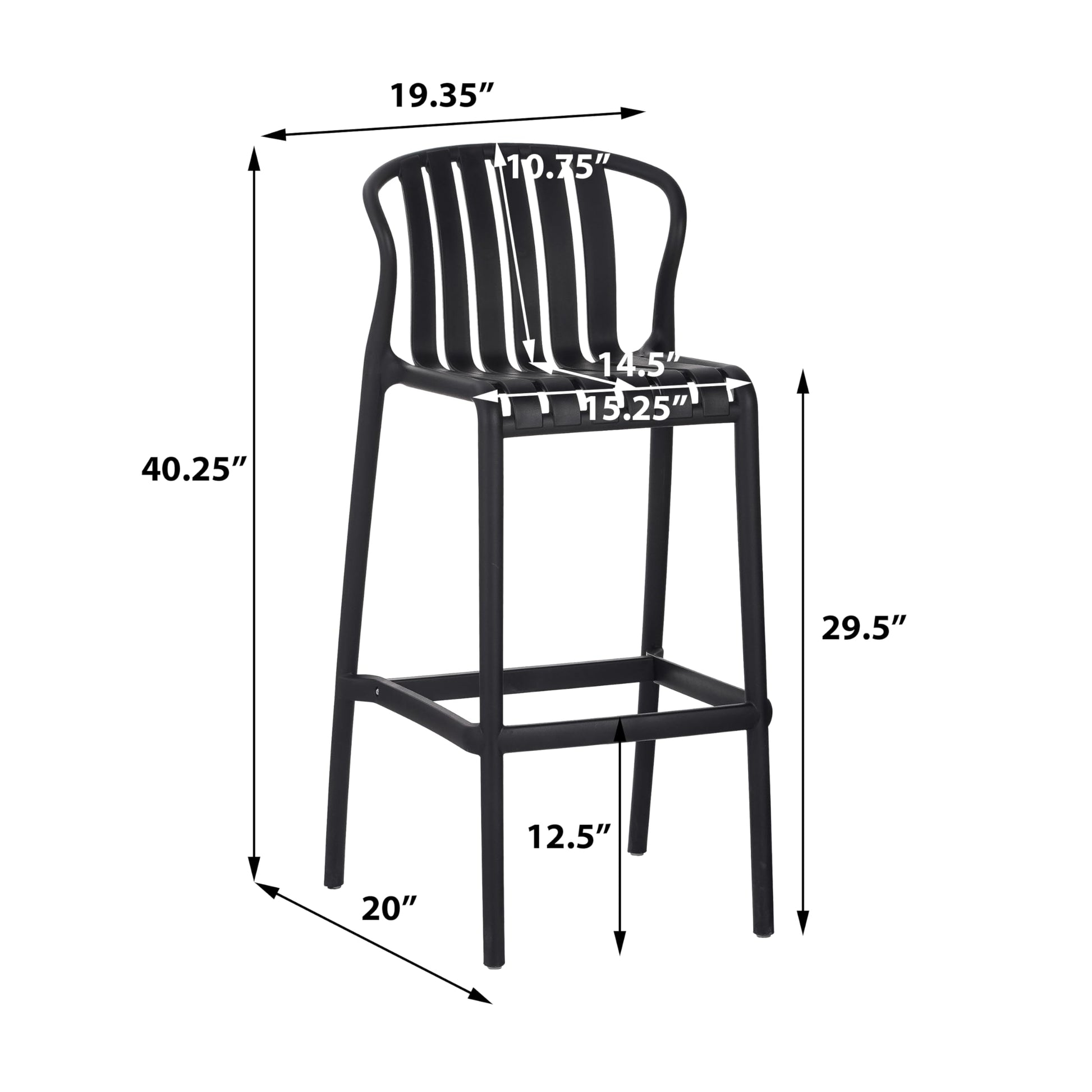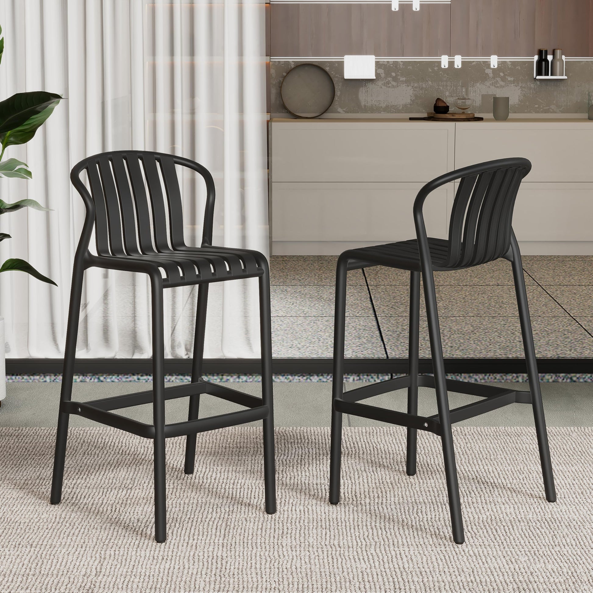 Outdoor Plastic Bar Stool Set of 2 Black