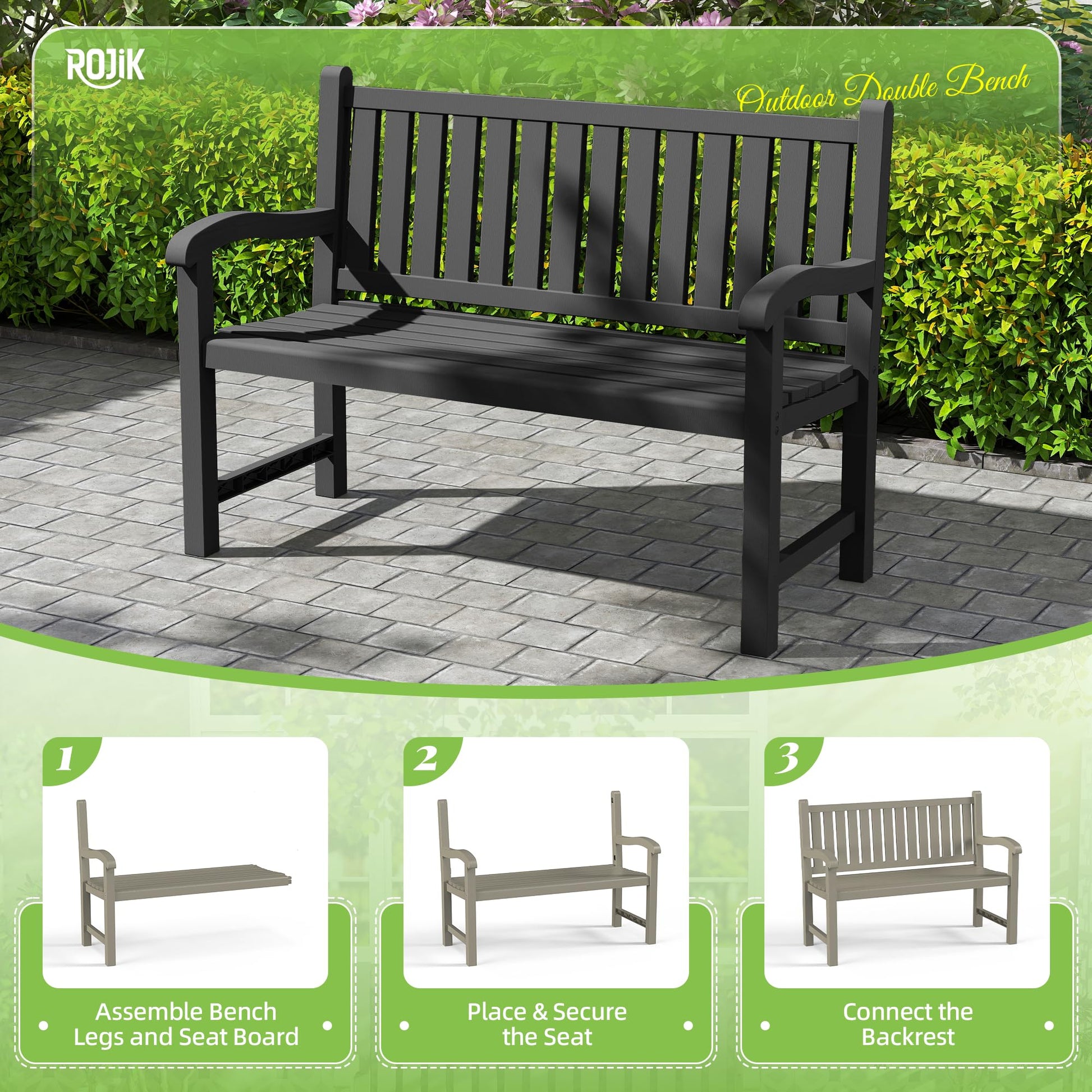 Outdoor Resin Bench - Waterproof 2-Person Patio Seating
