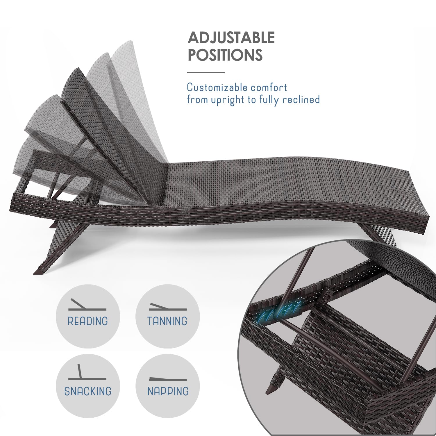 Outdoor Wicker Chaise Lounge Chair Set of 2 with Reclining Backrest