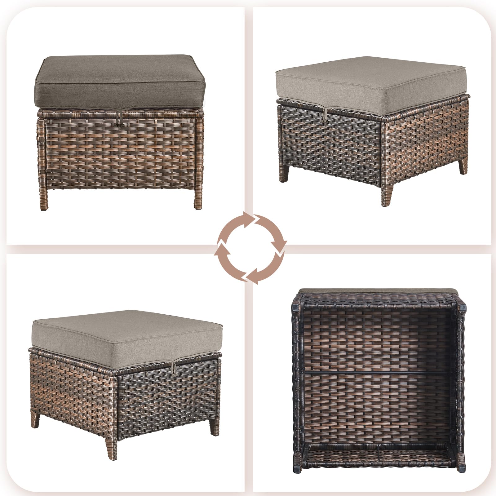 Transform your outdoor living space with this versatile 2-piece wicker ottoman set. Crafted from durable all-weather brown rattan, these multipurpose pieces serve as extra seating, footrests, or side tables for your patio, garden, back porch, poolside, or apartment balcony.