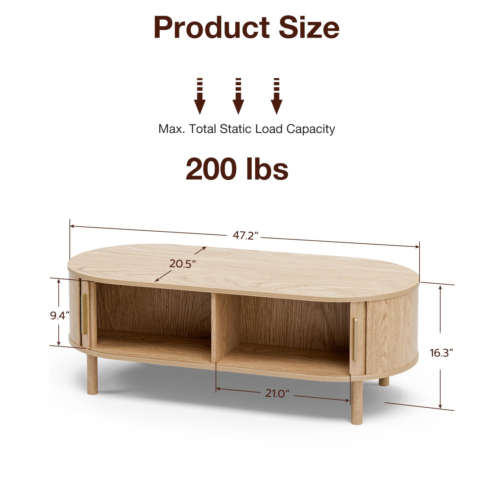 This modern oval coffee table combines elegant fluted design with practical storage solutions. Featuring sliding door cabinets, this center table is perfect for organizing your living room essentials while maintaining a clean, sophisticated aesthetic.