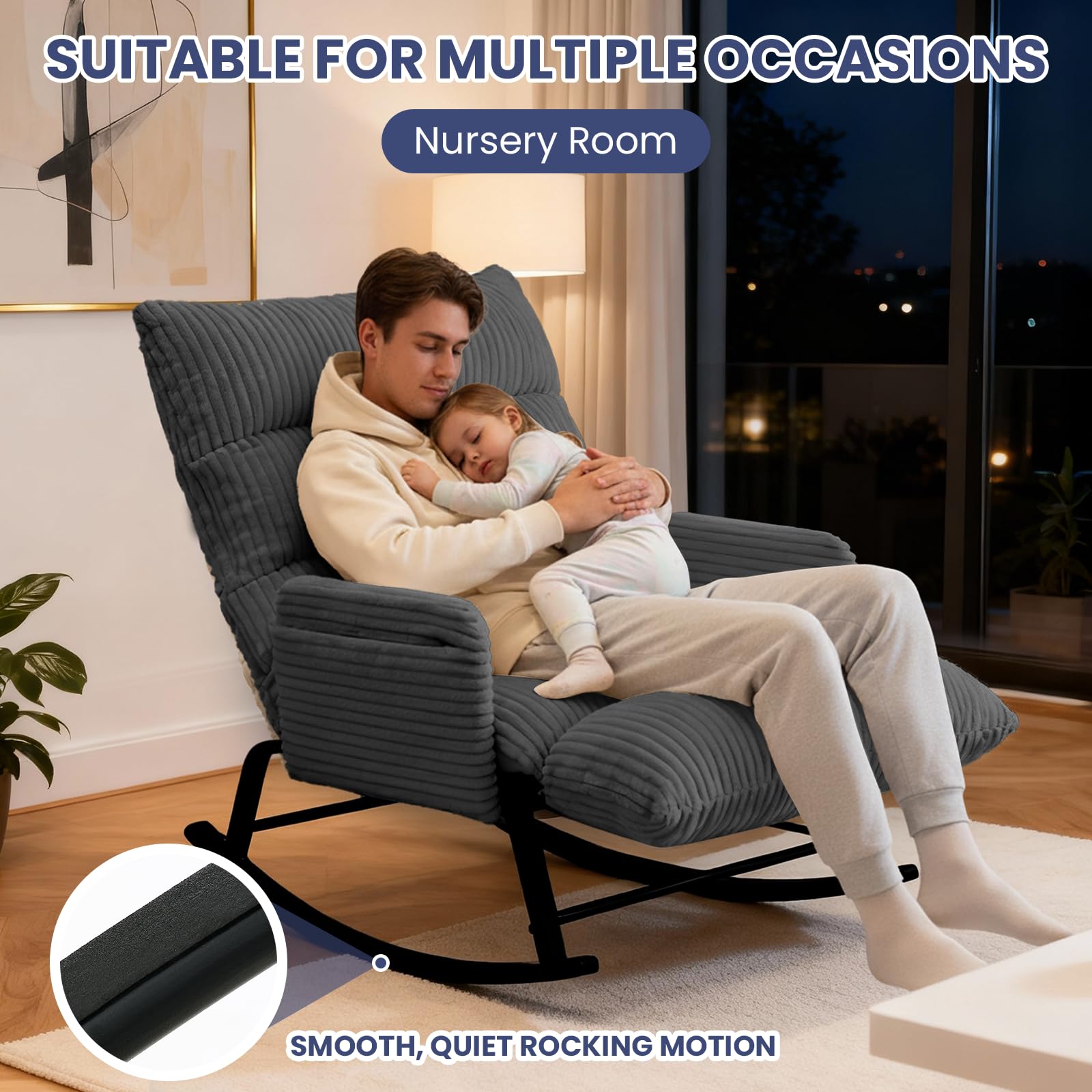- Safety Features: Includes anti-tipping device and sound-dampening pads for a safe, quiet, and floor-friendly rocking experience.
