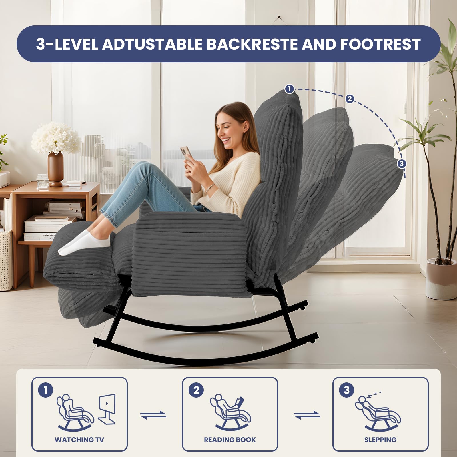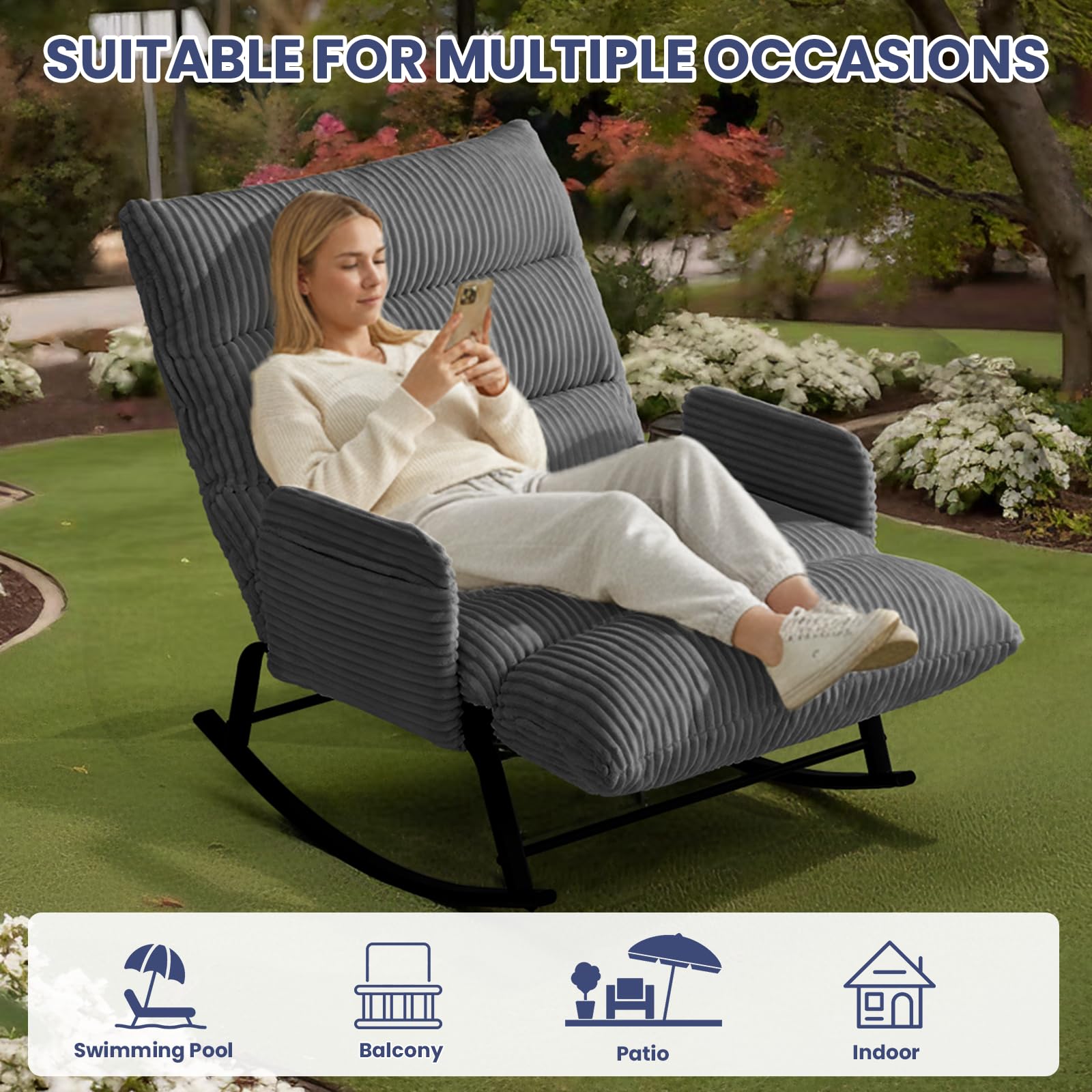 Oversized Rocking Chair with Adjustable Backrest and Footrest