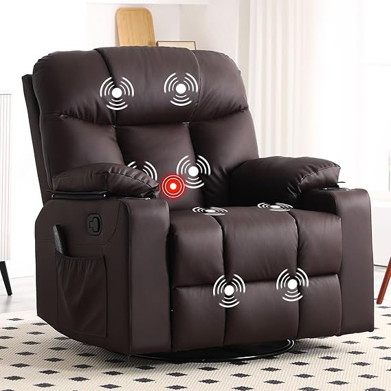Experience ultimate comfort with this premium oversized swivel rocker recliner. Featuring integrated heating and massage functions, this recliner transforms your living space into a personal relaxation sanctuary.