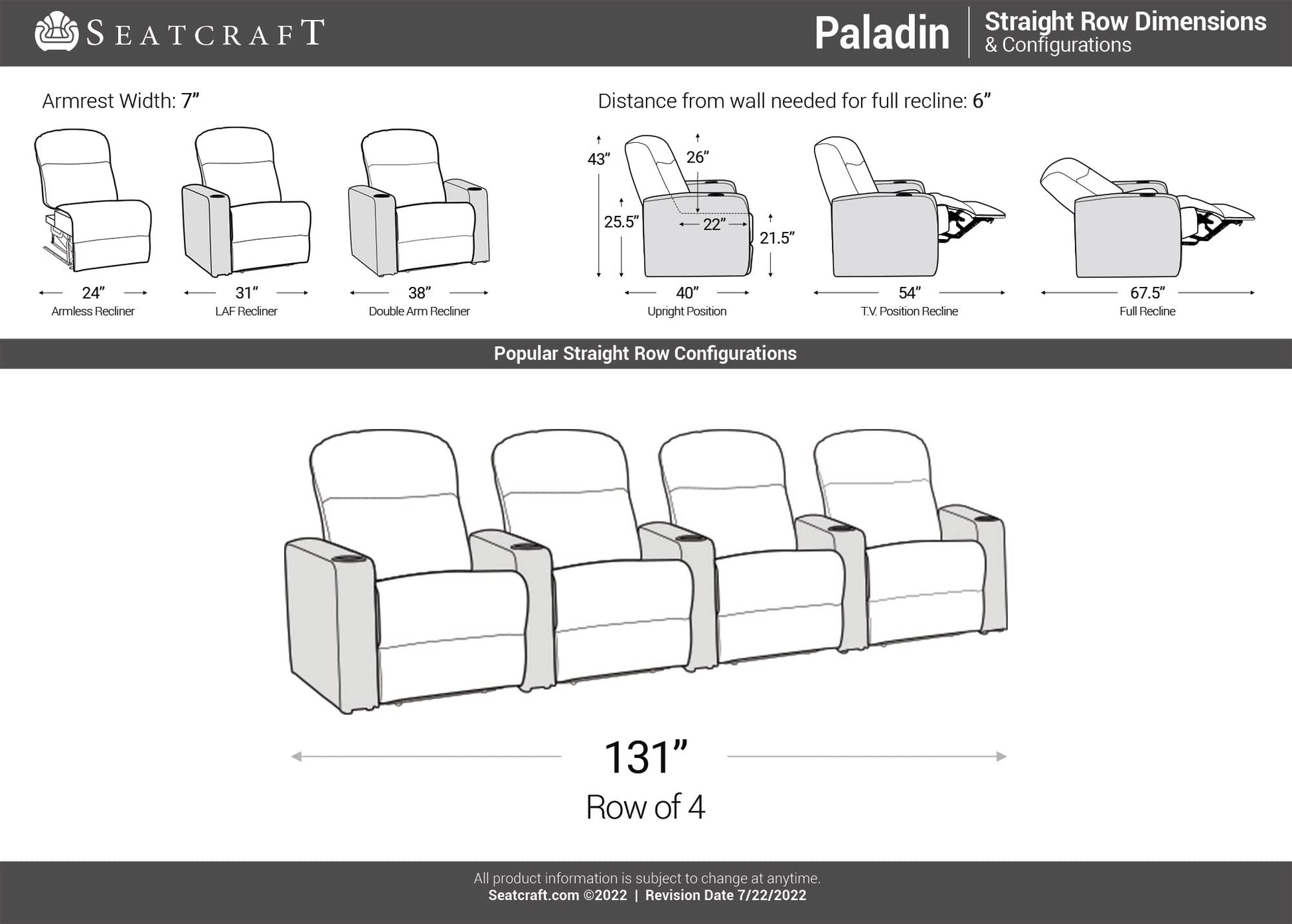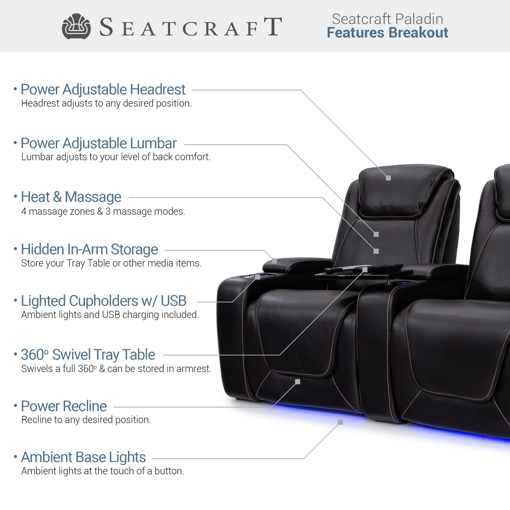Paladin Home Theater Seating - Heat & Massage, Powered Headrest & Lumbar, Italian Leather, Row of 4