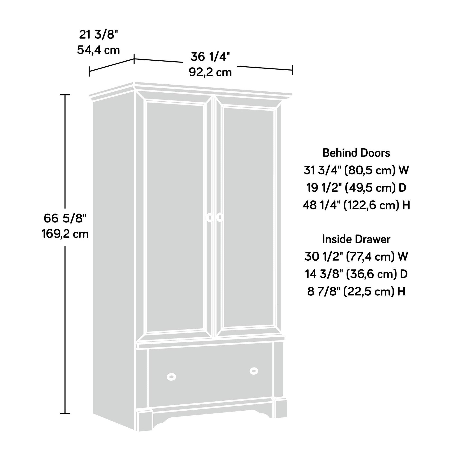 Versatile storage solution combining elegant style with practical functionality. This armoire features a garment rod for hanging clothes and an easy-gliding storage drawer, perfect for organizing your bedroom essentials.