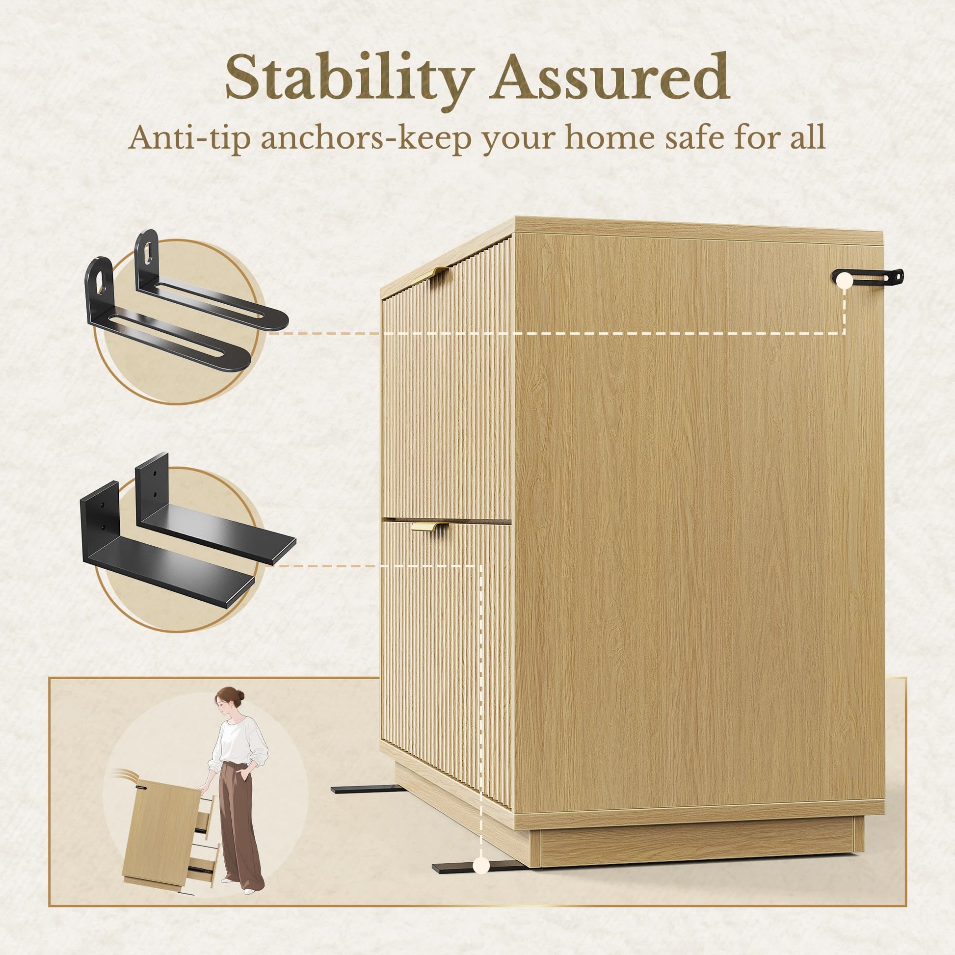 - Sturdy Build & Anti-Tip Safety:Crafted from high-quality engineered wood, this file cabinet is built to handle daily use while providing long-lasting storage. It also features a reliable anti-tip mechanism for added safety, giving you peace of mind in any home or office setting.