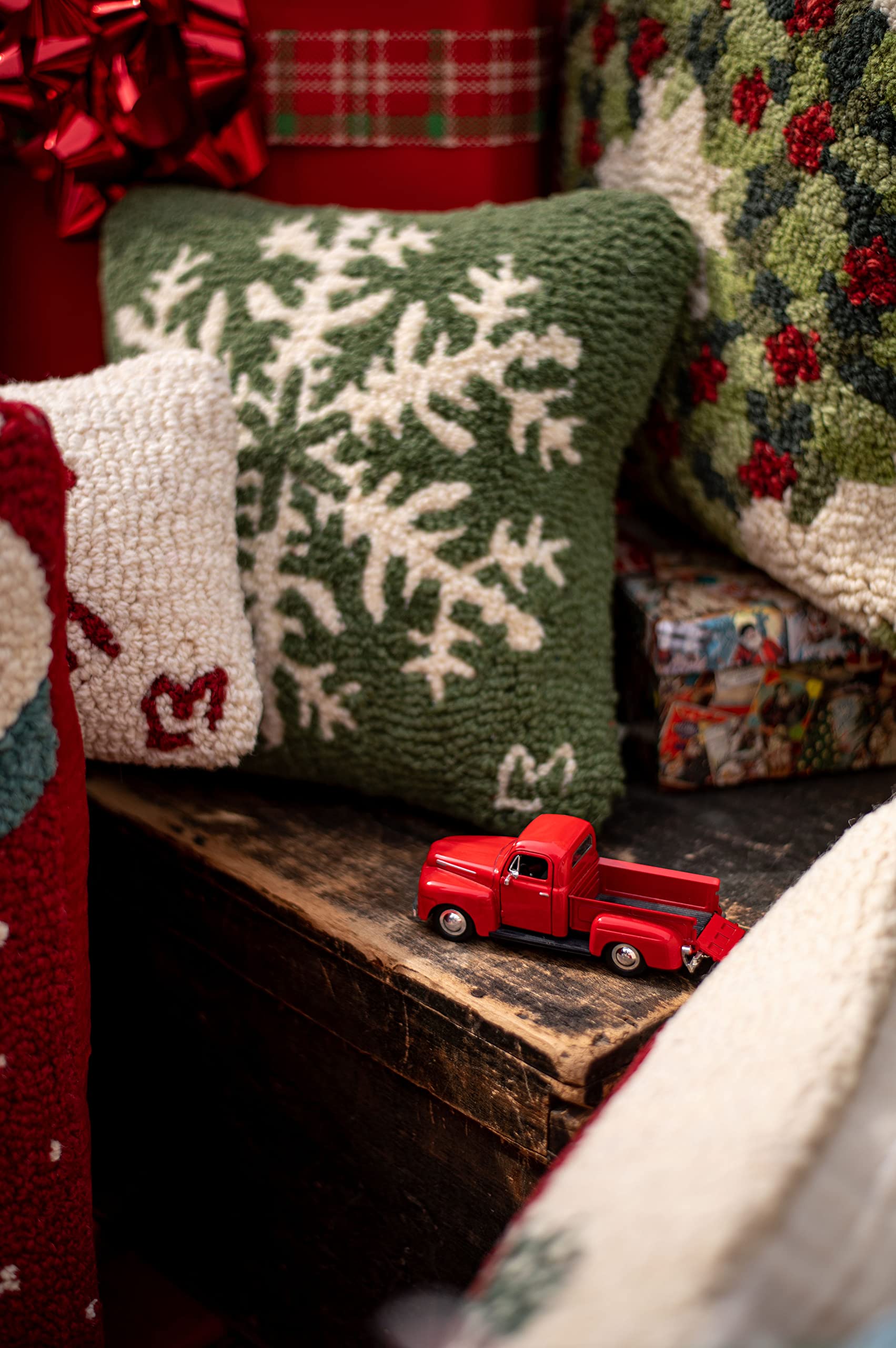 Pine Snowflake Hand-Hooked Wool Decorative Throw Pillow