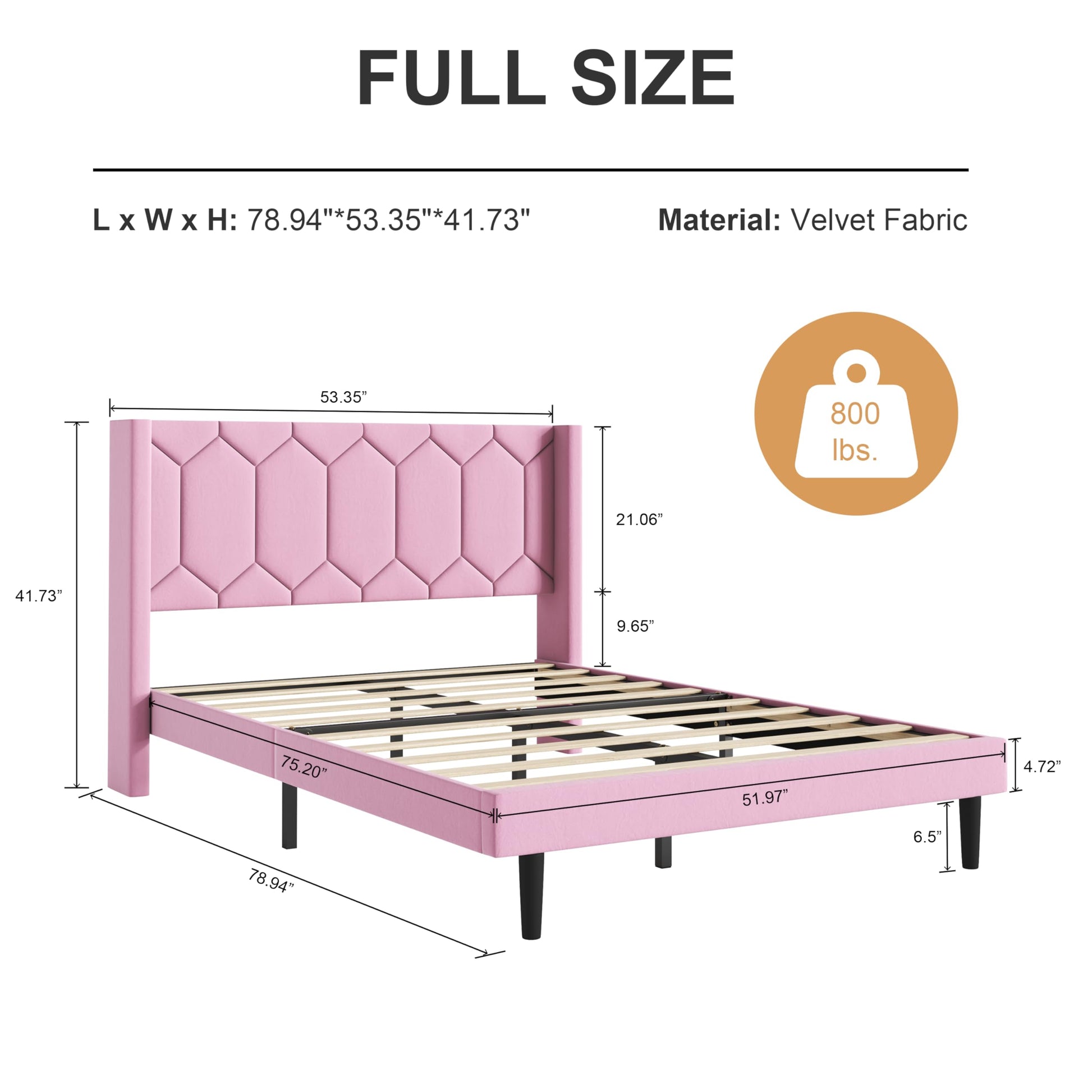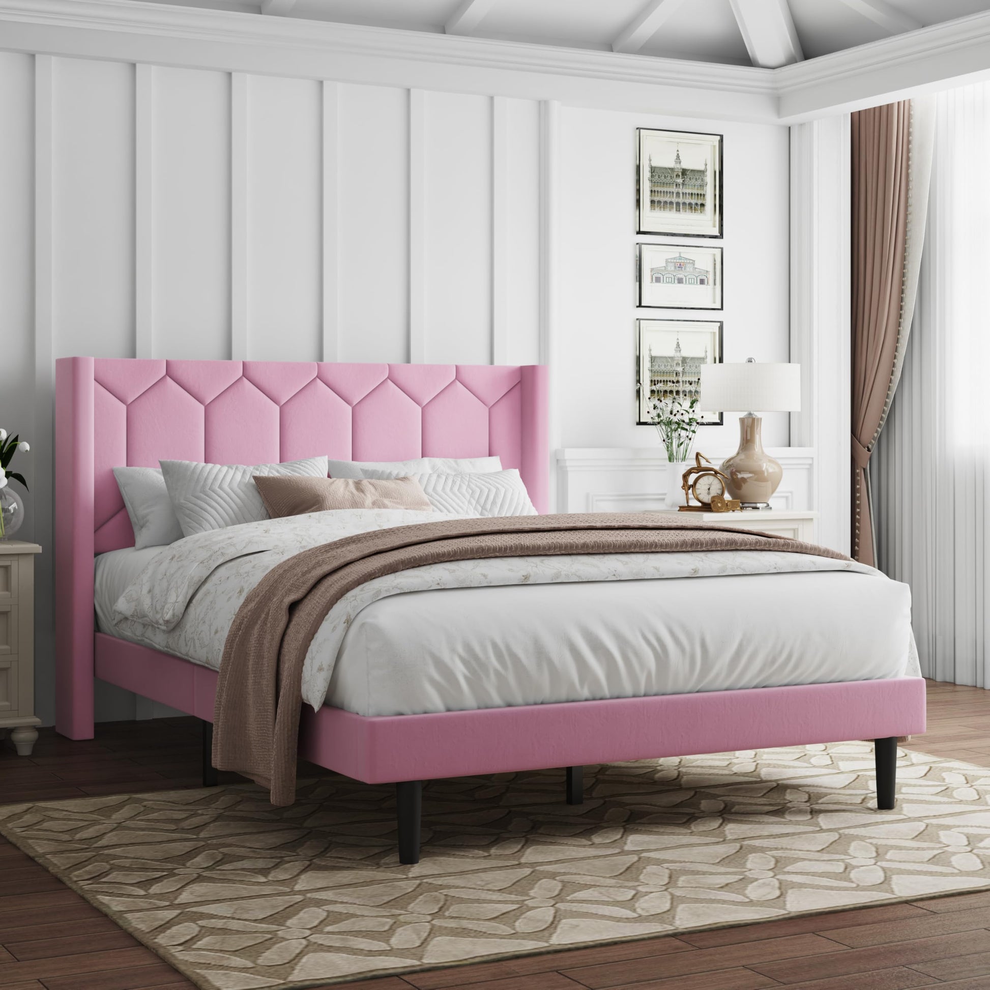 Pink Velvet Upholstered Full Bed Frame