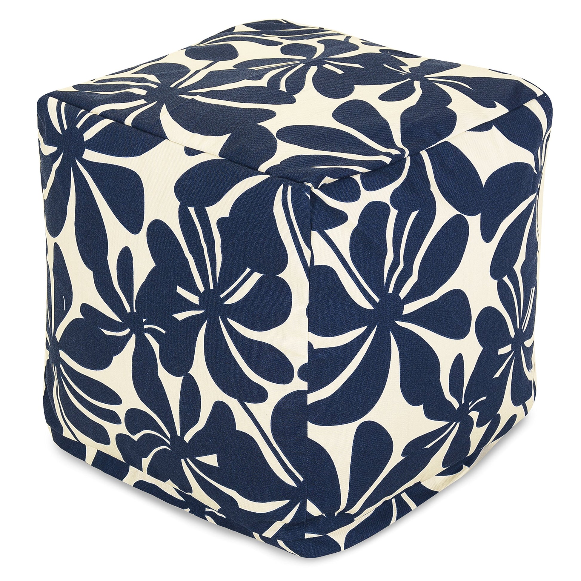 Transform your living space with this versatile bean bag ottoman pouf cube, designed for both indoor and outdoor use. Featuring a classic plantation pattern in navy, this cube-shaped ottoman delivers comfort and style wherever you need it.