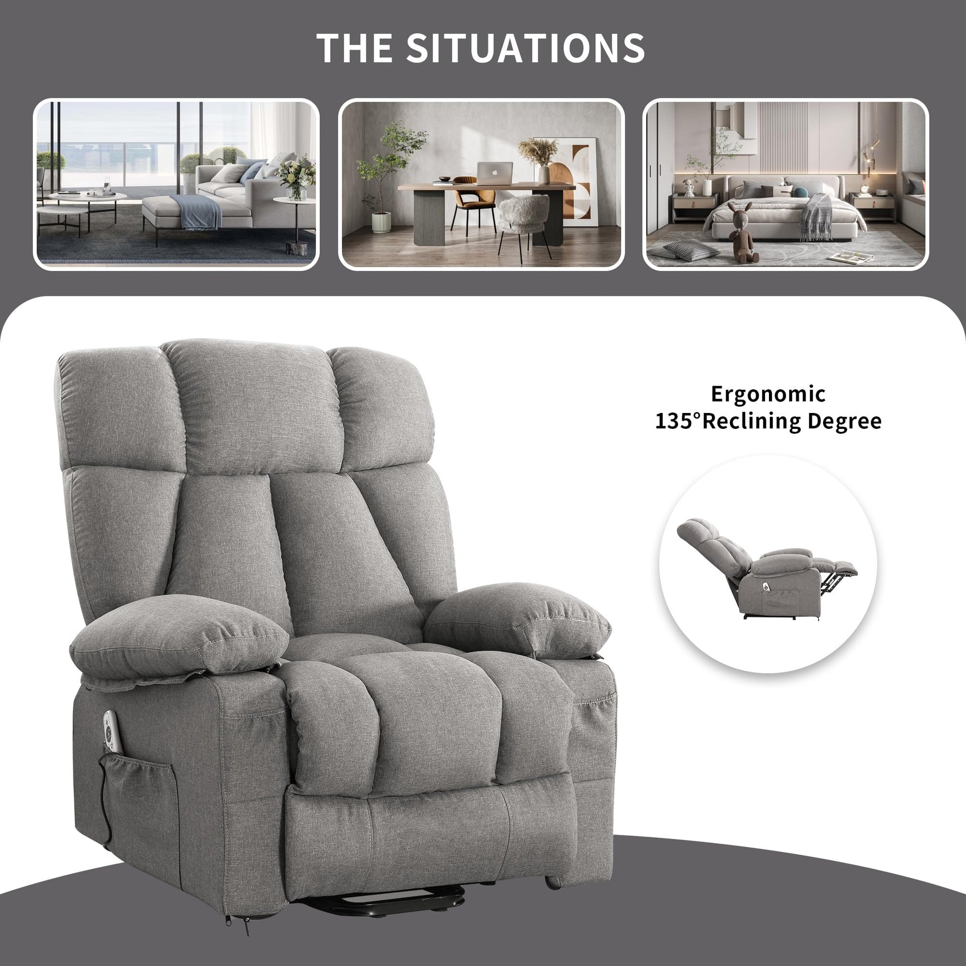 - Power Lift Assistance: Smoothly adjusts lifting and reclining positions up to 160° with dual-button remote control, helping seniors stand up easily without stress on back or knees