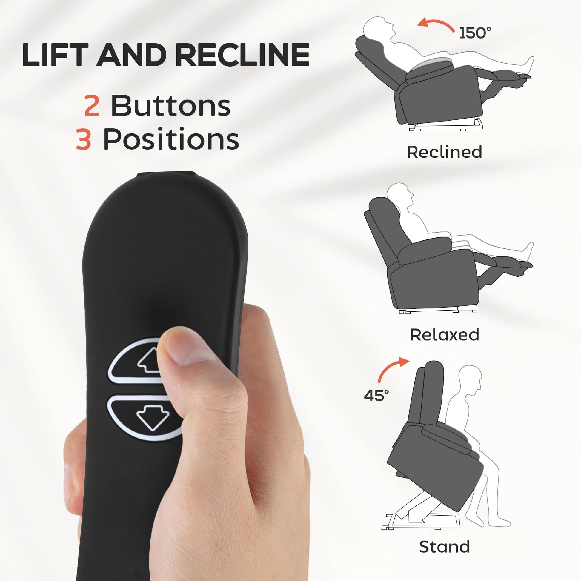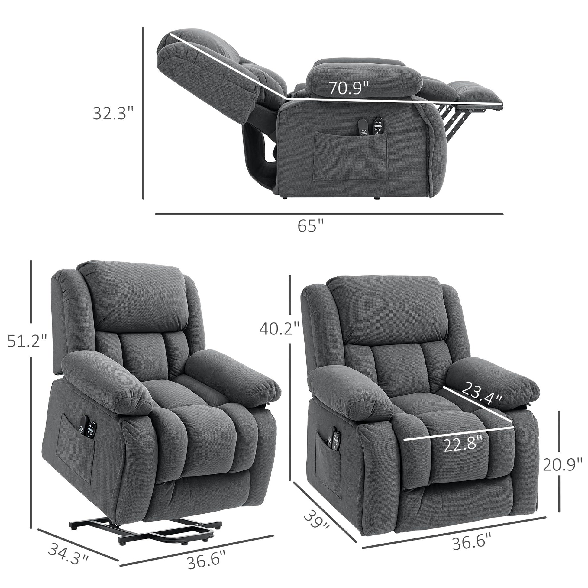 | Features | Power Lift, Vibration Massage, Heat Therapy, Remote Control, USB Port, Side Pockets |