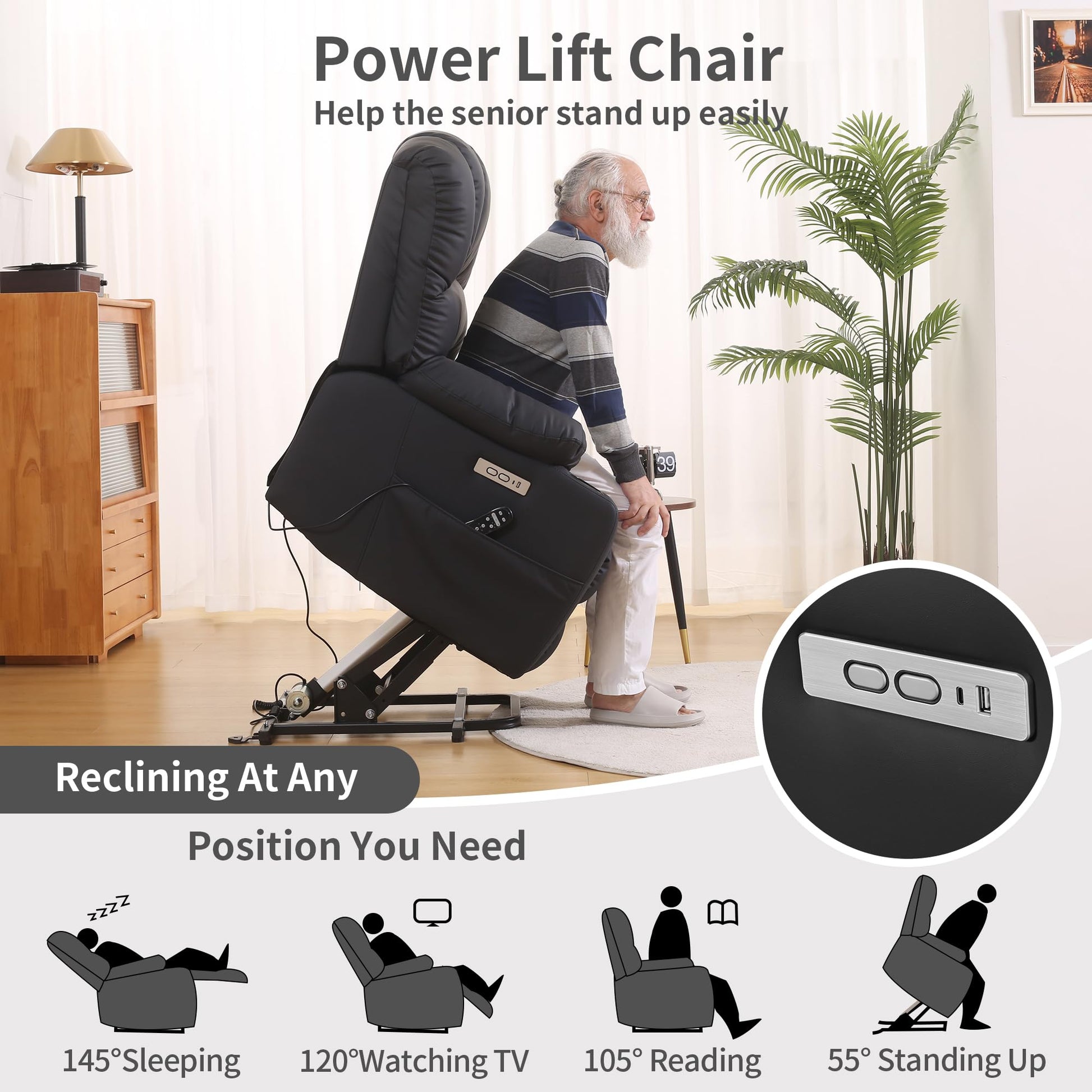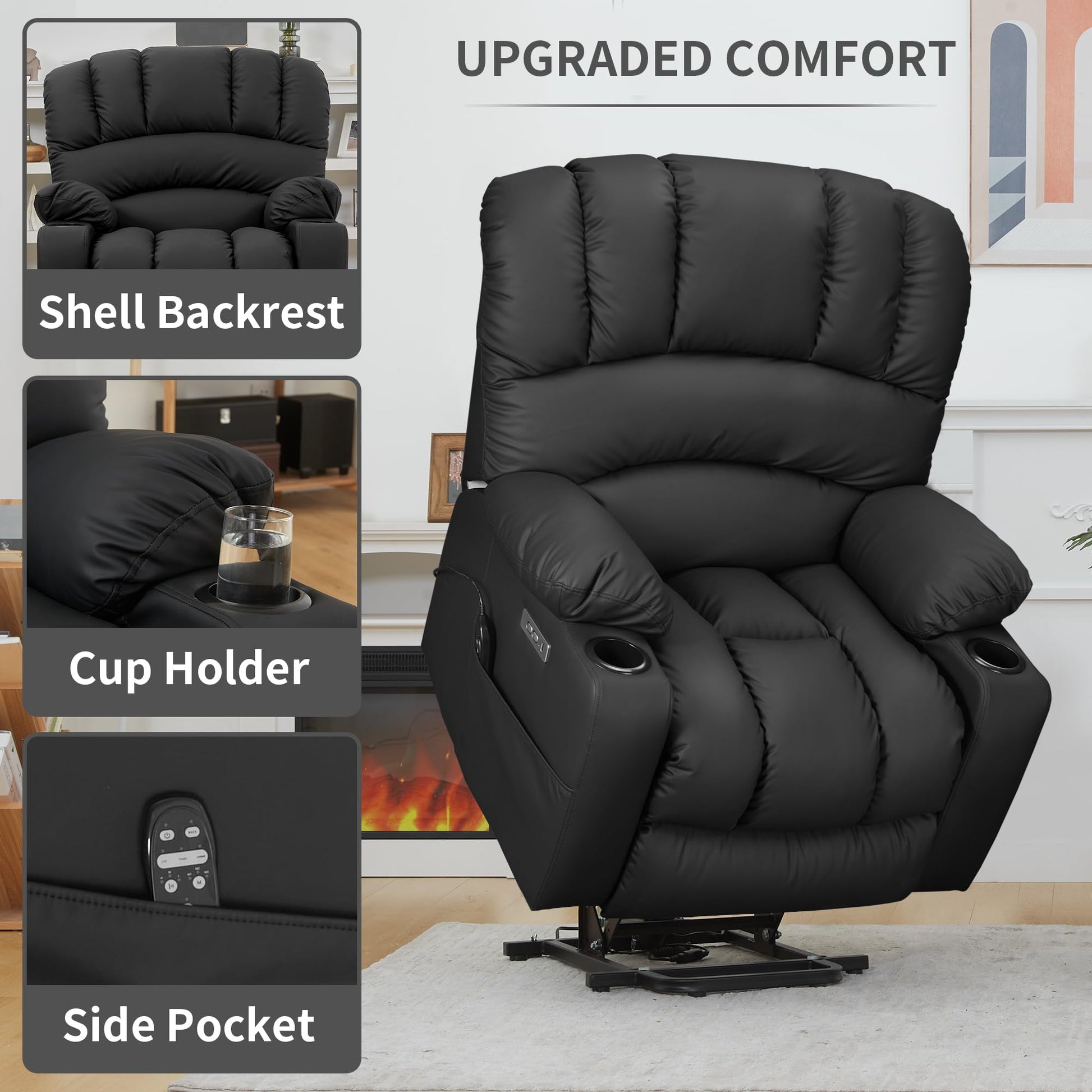 Experience superior comfort and therapeutic relief with this electric power lift recliner featuring a large shell design and premium faux leather upholstery. Engineered for elderly users and seniors, this lift chair combines advanced massage technology, soothing heat therapy, and convenient power lift assistance to enhance mobility and relaxation.