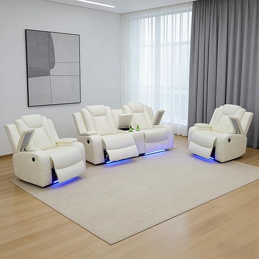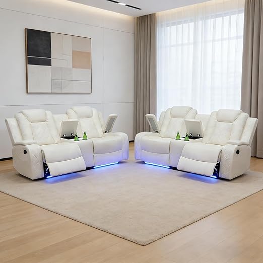 Power Recliner Sofa Set with LED Lights and Storage Console