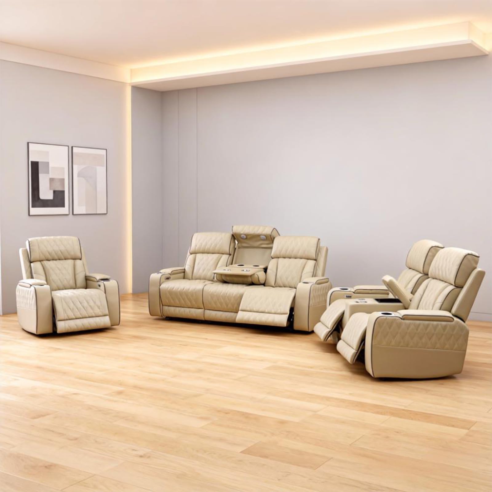 Transform your living space with this modern power reclining sectional sofa set. Featuring built-in LED reading lights and USB charging ports, this luxurious furniture set combines comfort, functionality, and contemporary design.
