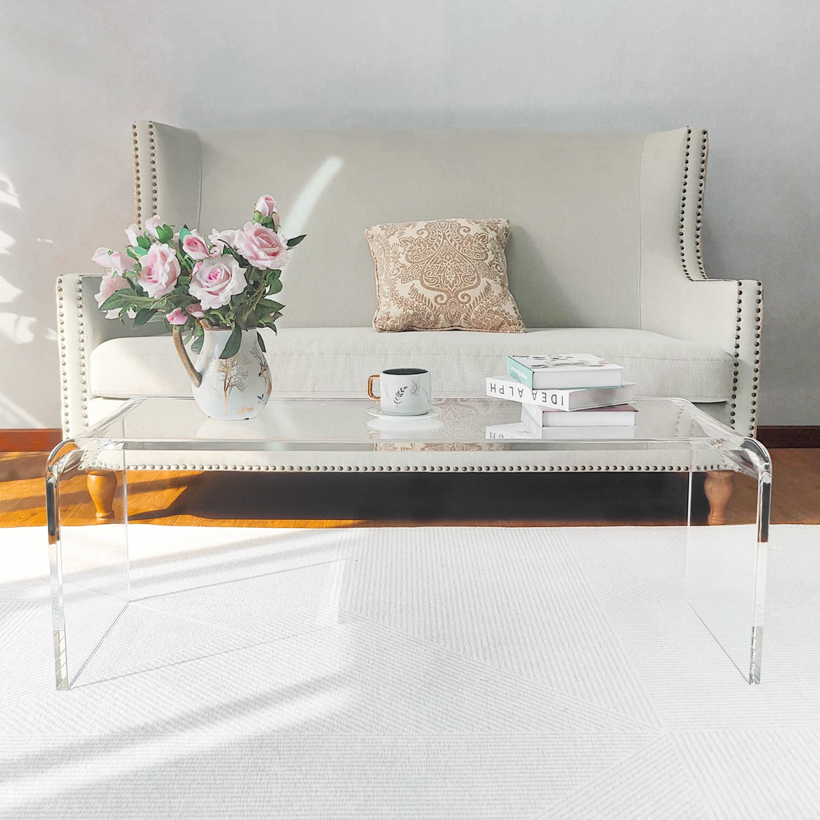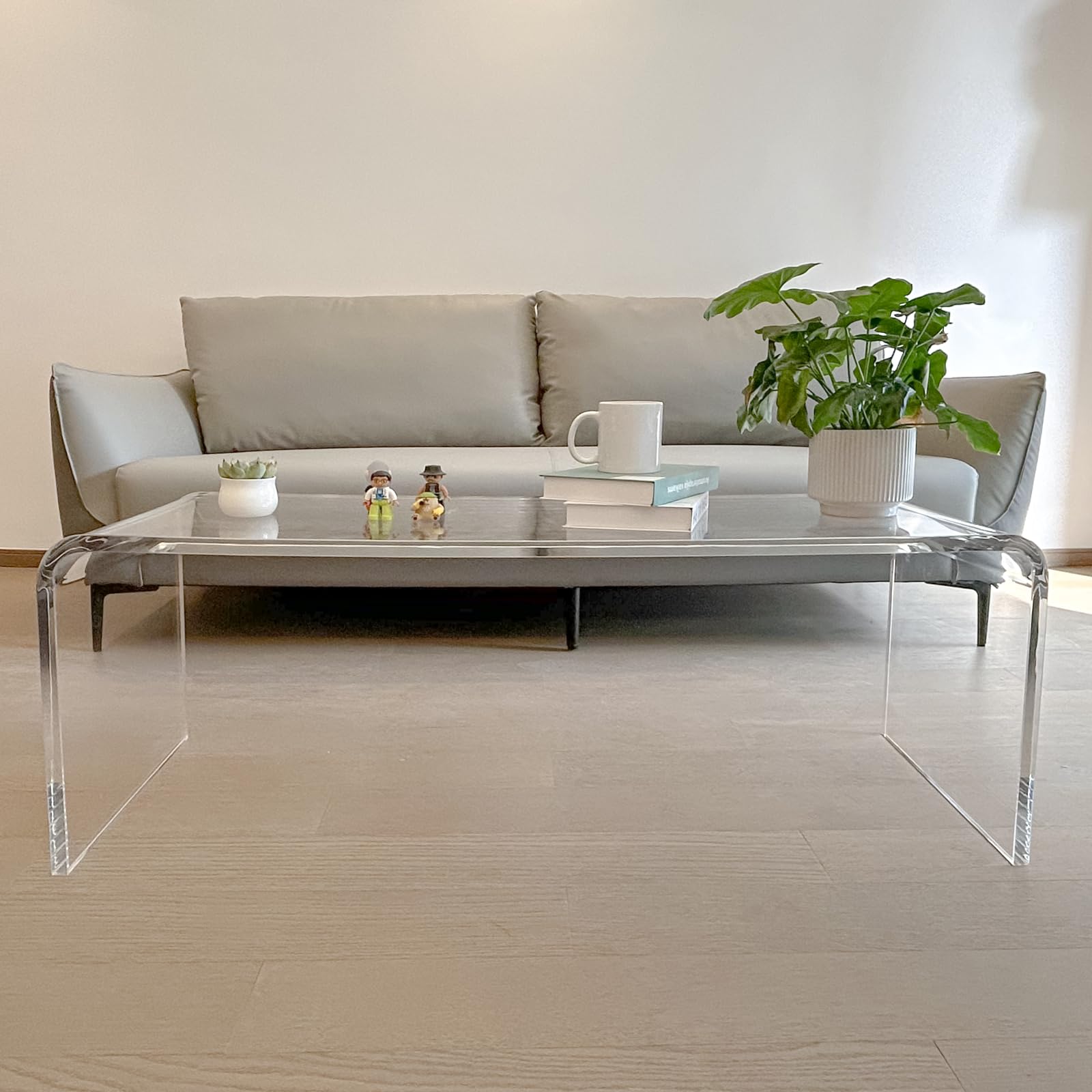 Elevate your living space with this stunning premium acrylic coffee table. Crafted from thick, crystal-clear lucite, this modern waterfall design brings contemporary elegance to any room.