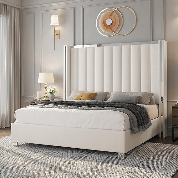 - Elegant 58" Tall Headboard: Soft velvet upholstered bed with channel tufted wingback design and stylish galvanized strip trim makes this a standout piece in any bedroom