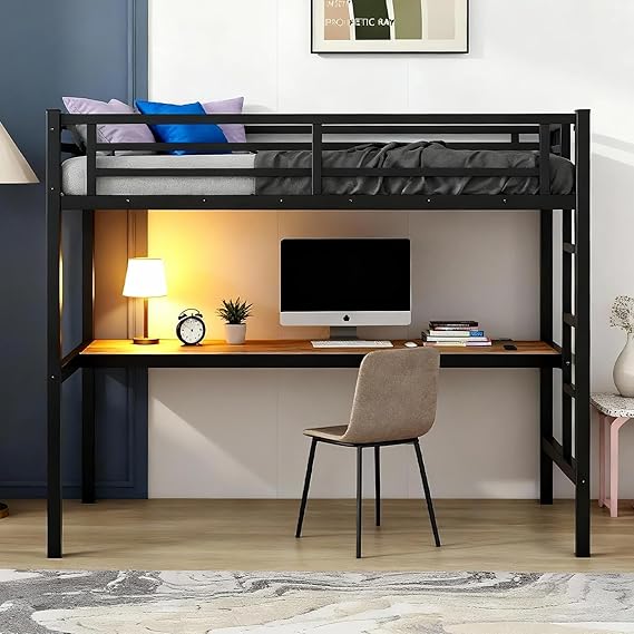Transform your space with this versatile metal loft bed that combines sleeping, working, and storage solutions in one sleek design. Perfect for dorms, apartments, and bedrooms where maximizing space is essential.