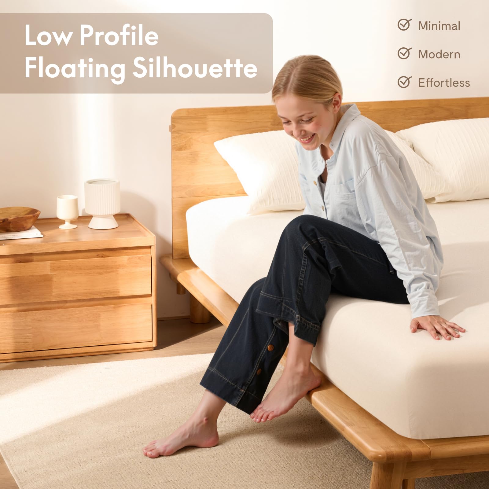 This solid rubberwood platform bed frame combines modern Scandinavian design with practical functionality. Featuring a low-profile floating design, integrated storage shelf, and built-in charging station, this bed frame offers tool-free fast assembly for ultimate convenience.