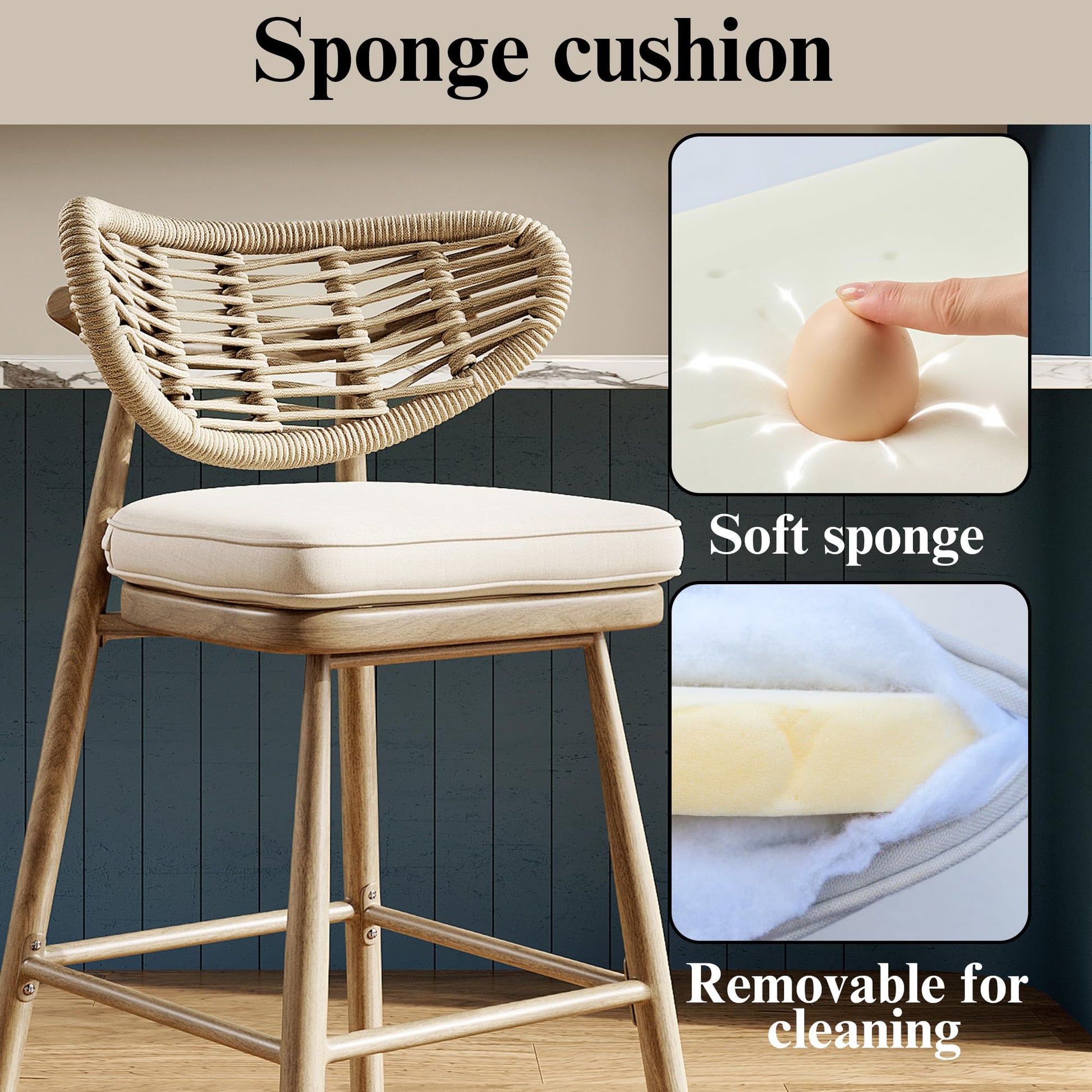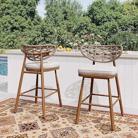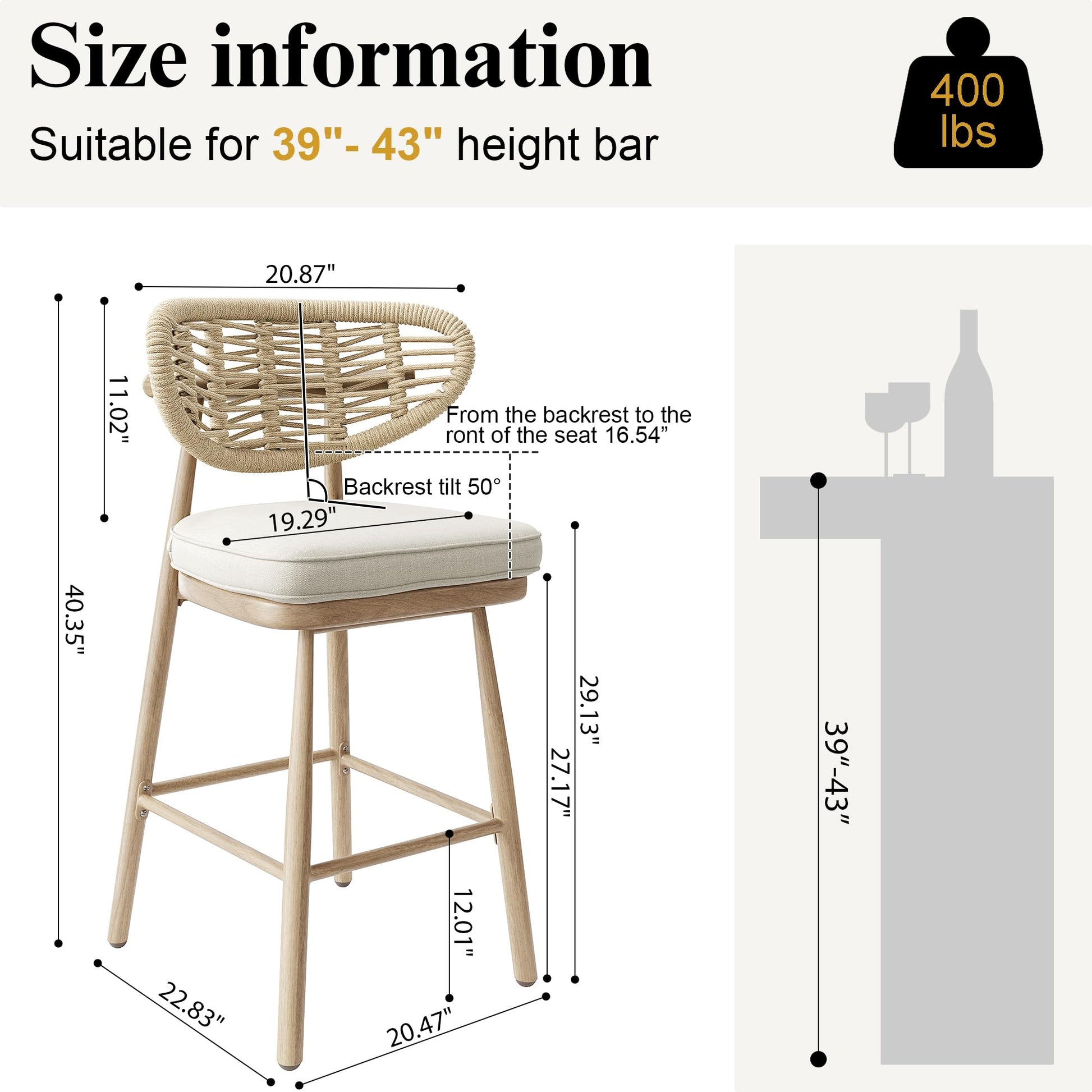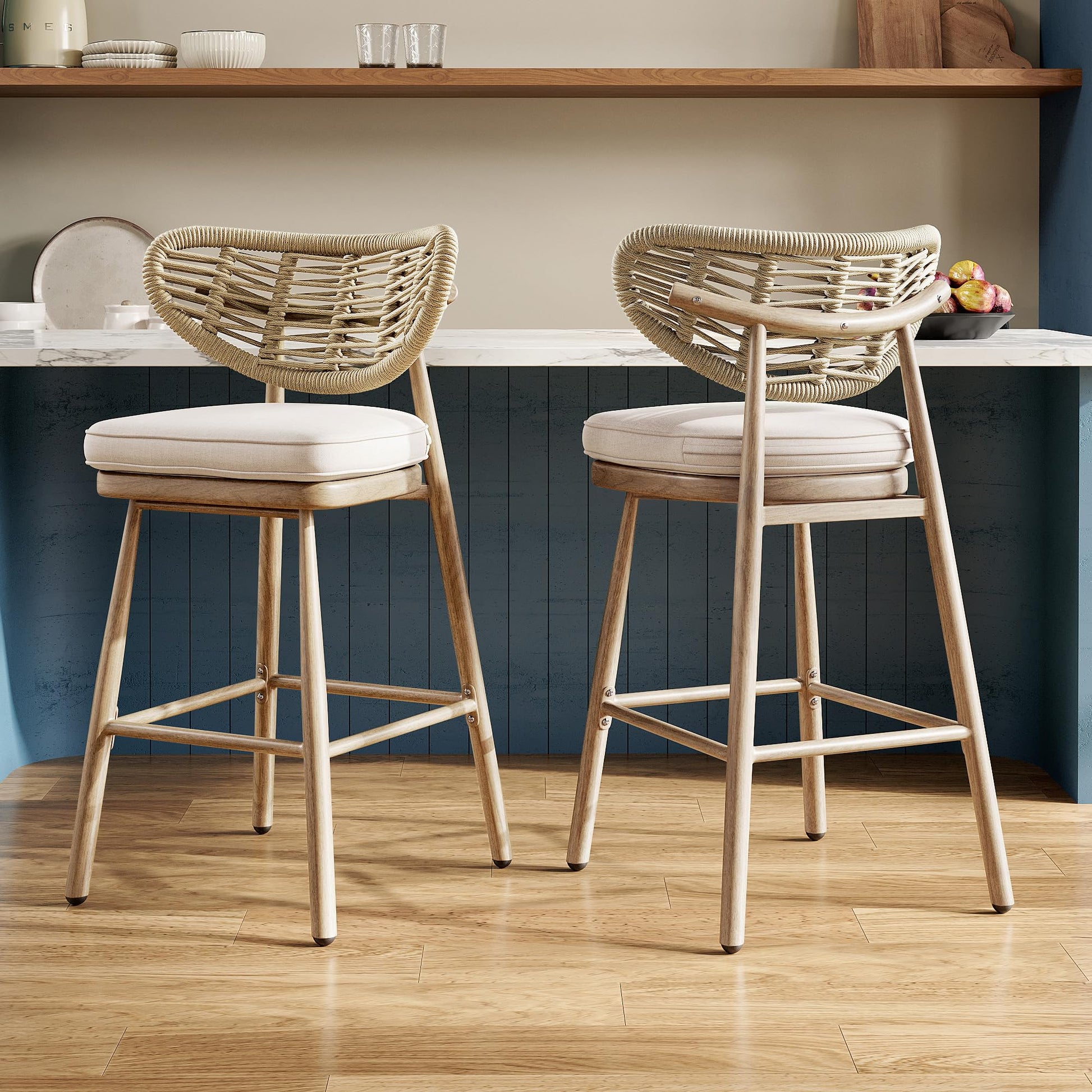 Elevate your outdoor entertaining space with these handwoven rattan bar stools. Featuring a breathable rattan backrest and durable aluminum frame, these stools combine style with exceptional comfort and weather resistance.