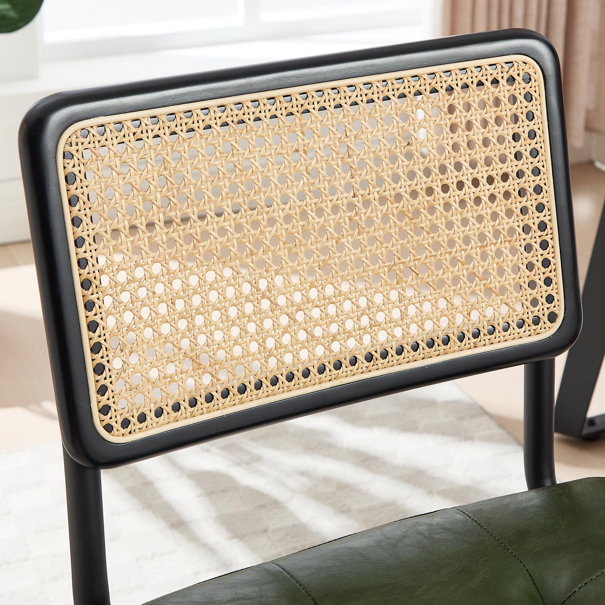 Experience the perfect blend of mid-century modern design and contemporary comfort with this stunning rattan desk chair. Featuring a hand-woven rattan backrest in red oak tone paired with a plush faux leather seat, this armless swivel chair brings timeless elegance to any workspace.