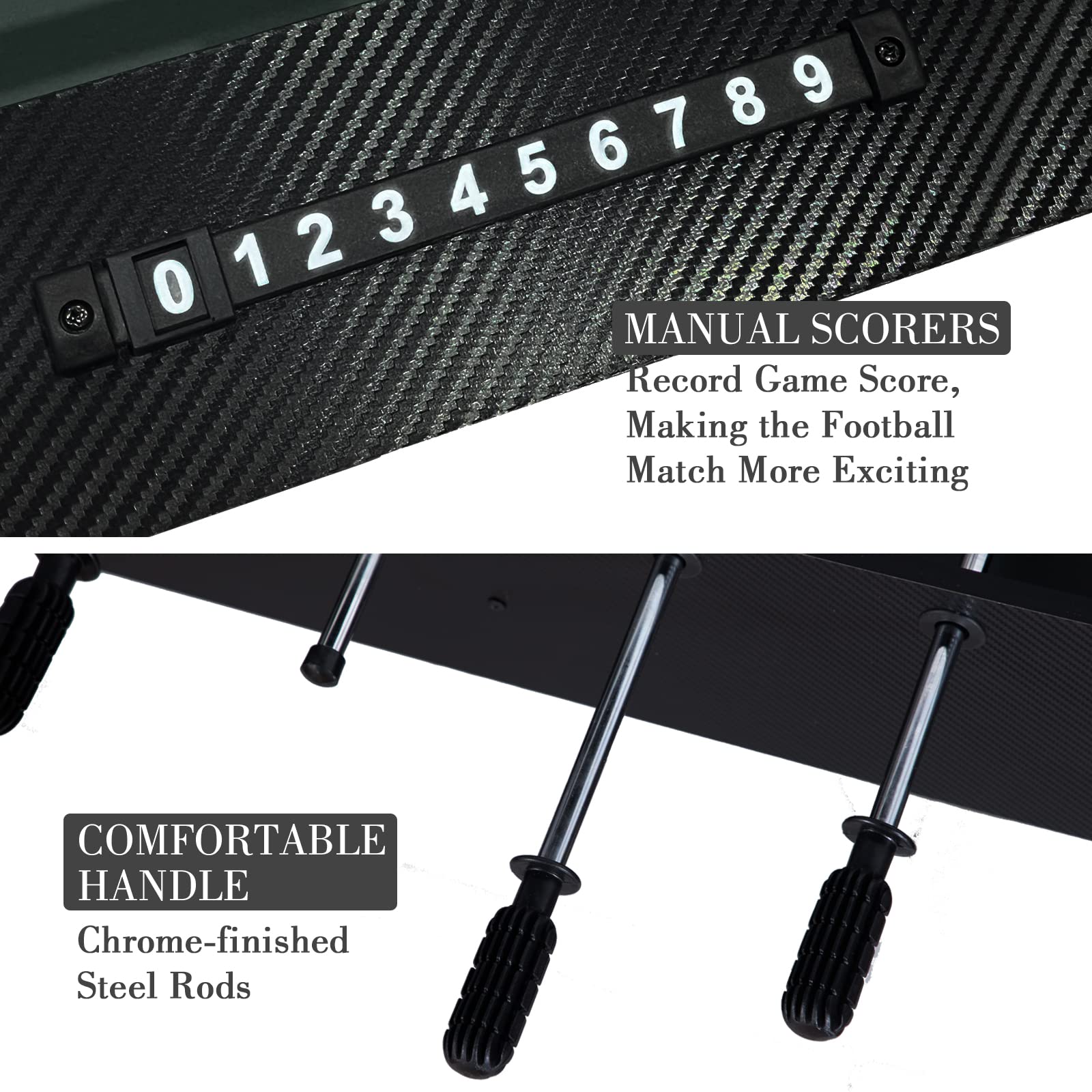 - 48" FOOSBALL TABLE & ERGONOMIC HANDLES: Perfect for any game room and players of all ages and abilities; Fully assembled dimensions-48" x 24" x 30.8"; The rod has a comfortable non-slip grip, which is ergonomically designed for better ball control.