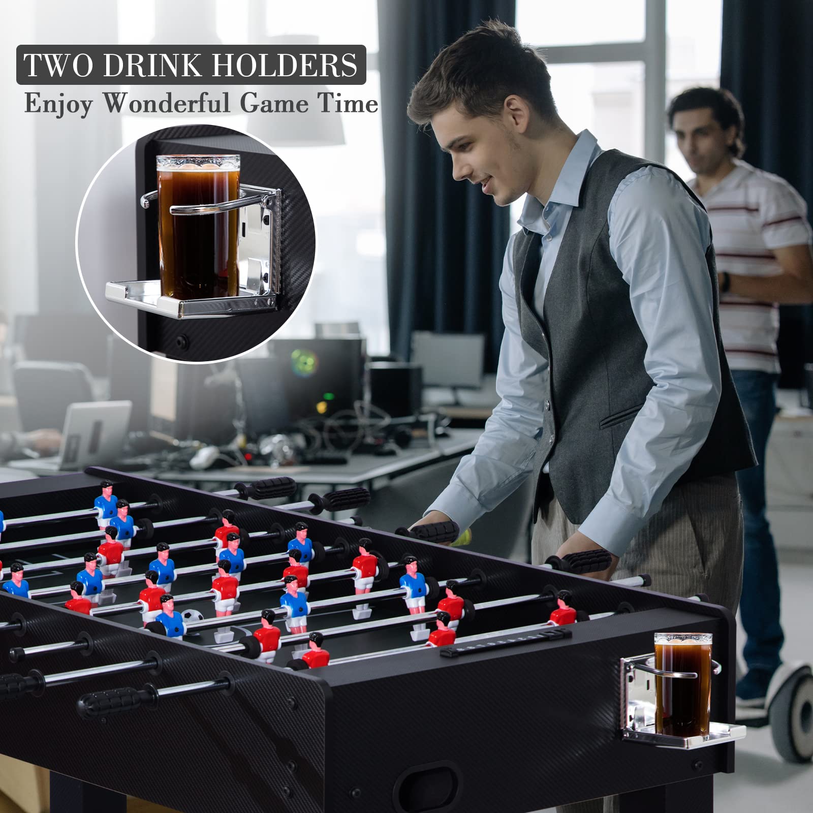 - FOLDING DRINK HOLDERS: Foosball table includes 2 football accessories and 2 foldable convertible cup holders to keep your drinks within reach and play the game without interruption. It is durable and compact game table.