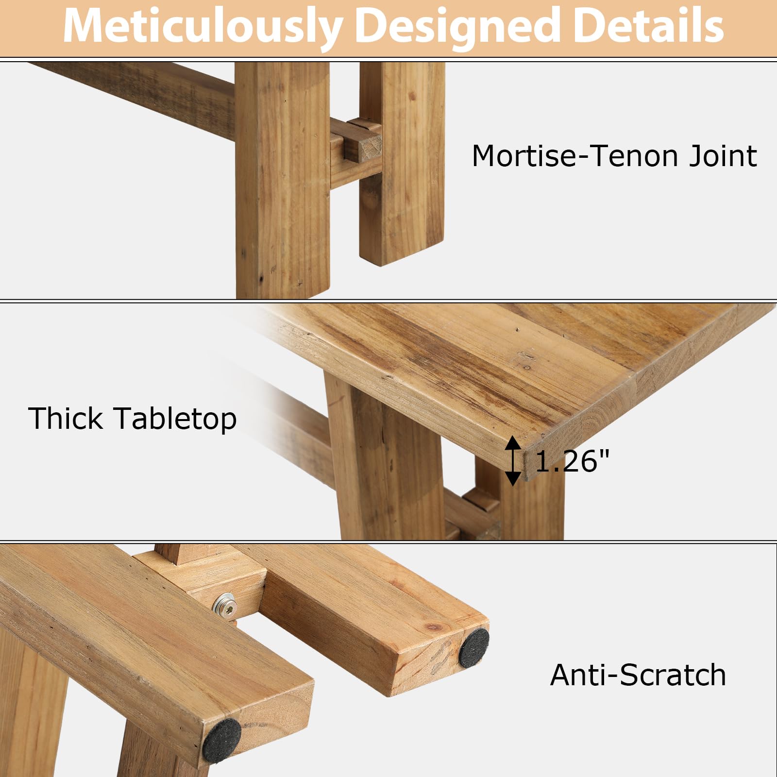 - Natural wood finish with farmhouse aesthetic