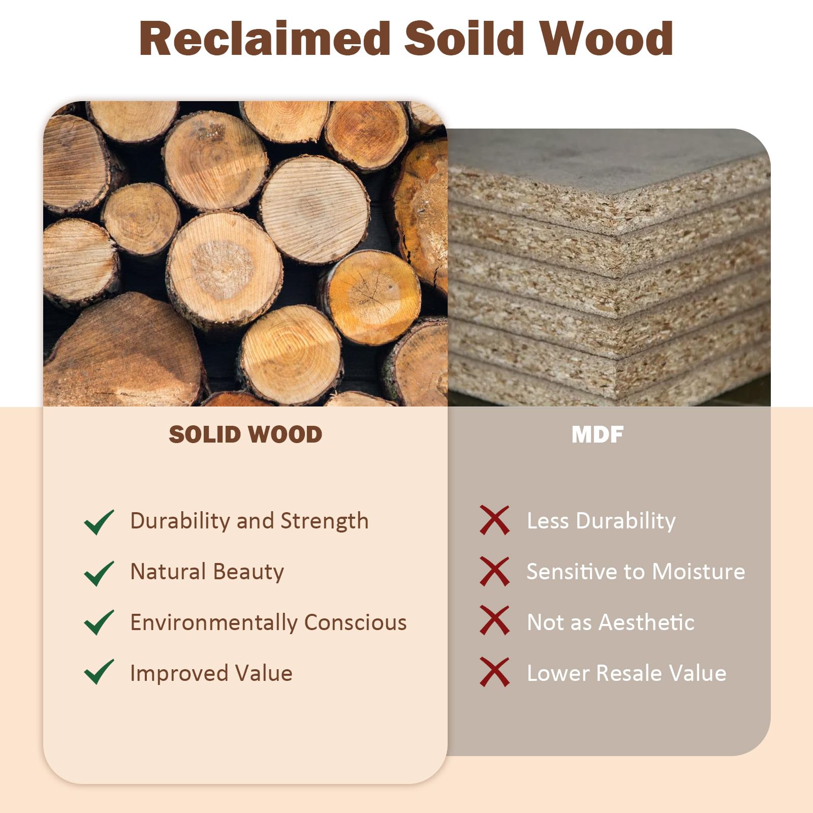 | Material | Reclaimed Pine and Fir Wood |