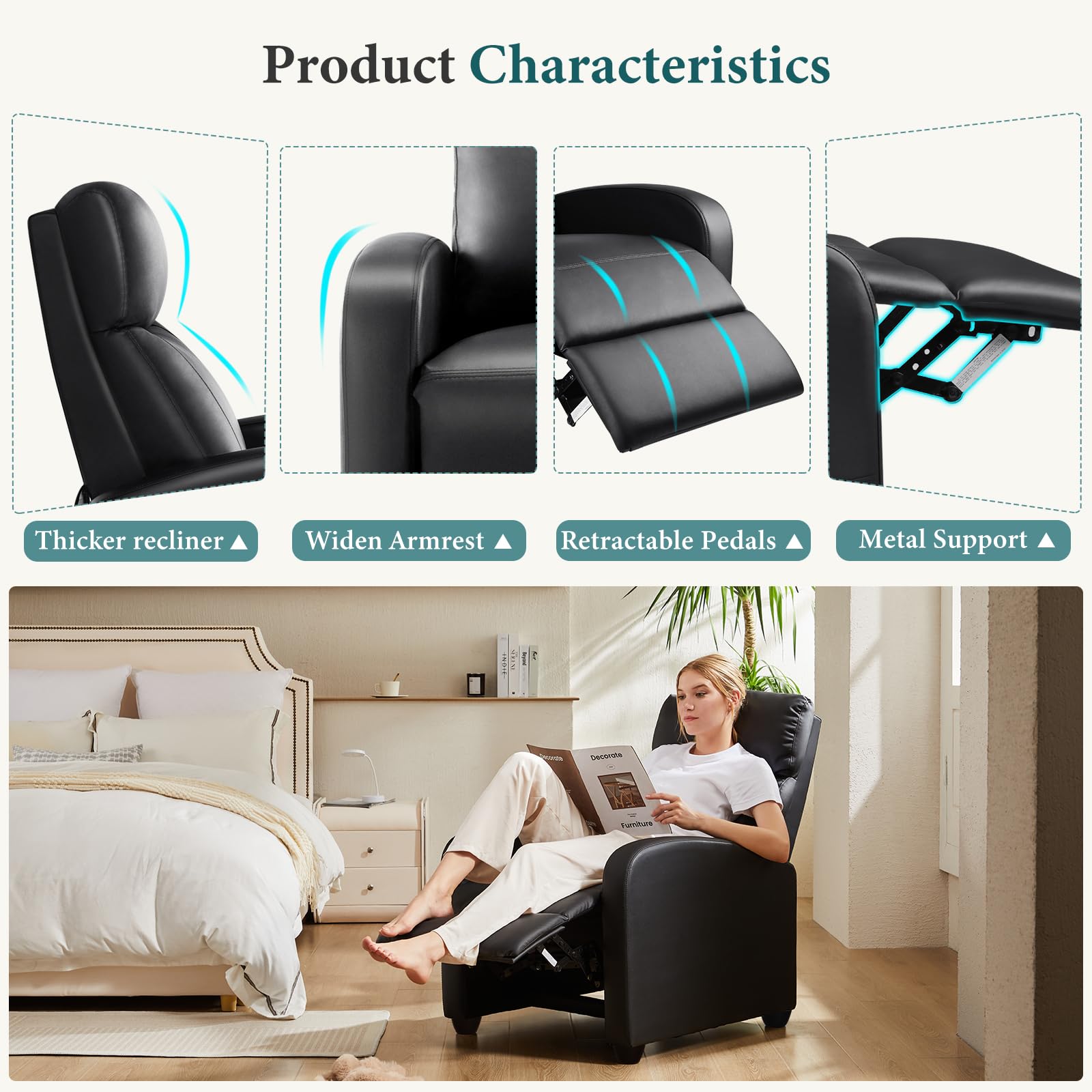- Space-Saving Design: Compact footprint with full reclining feature, ideal for small living spaces