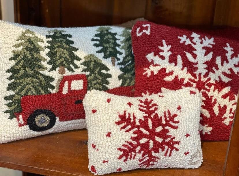 Transform your home into a winter wonderland with this artist-designed decorative throw pillow featuring a classic red snowflake pattern. Hand-hooked from premium wool, this Christmas pillow brings warmth and festive charm to your couches, beds, and living spaces.