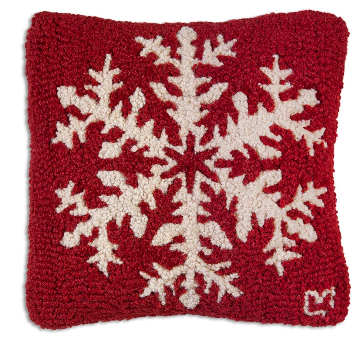 Red Snowflake Hand-Hooked Wool Christmas Throw Pillow