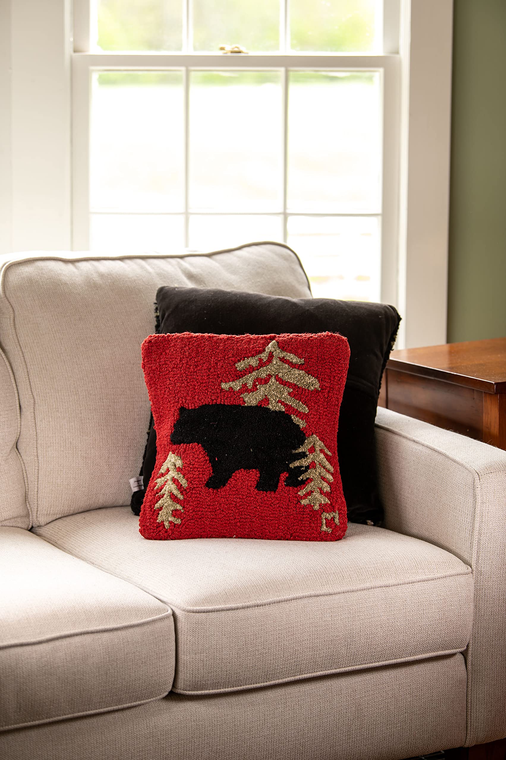 Red Wandering Bear Hand-Hooked Wool Throw Pillow 14x14