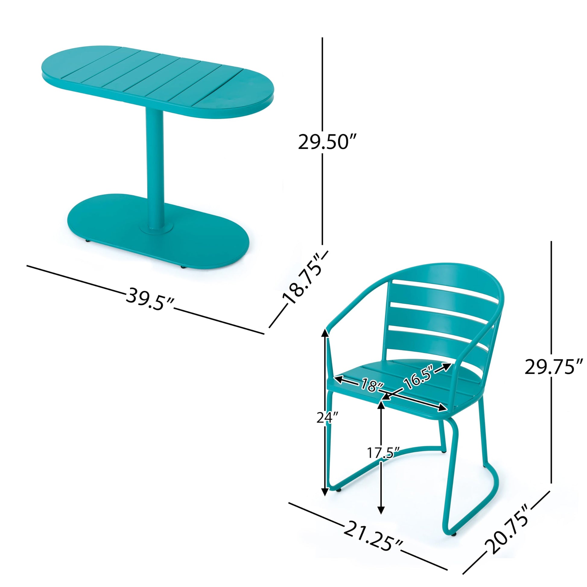 Transform your outdoor space with this elegant retro-inspired bistro dining set. Crafted from durable iron with an all-weather finish, this set includes an oval tabletop table and two comfortable armchairs, perfect for intimate dining or relaxing on your porch, patio, balcony, or garden.