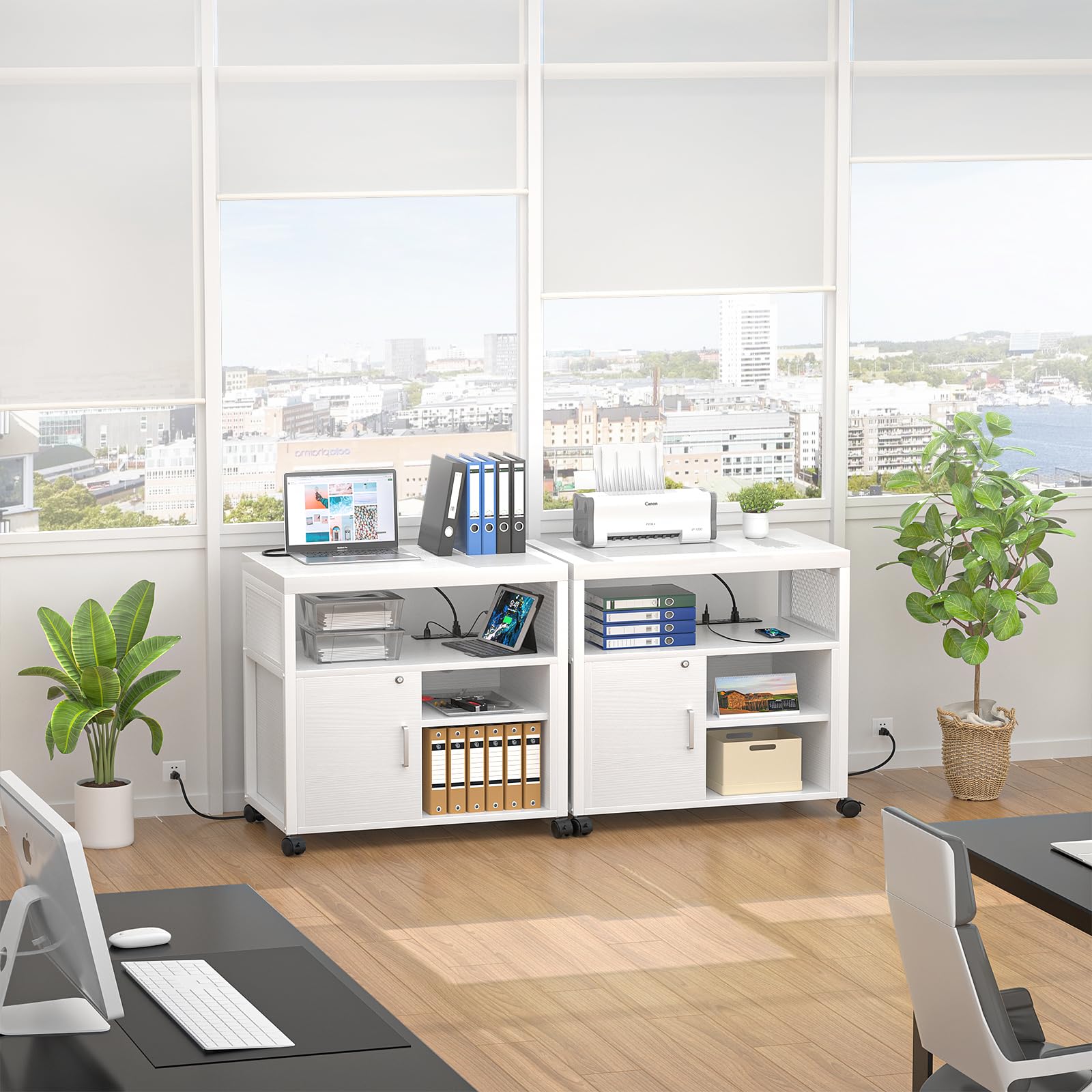 Home offices, corporate workspaces, small businesses, and any environment requiring mobile storage with integrated power access.