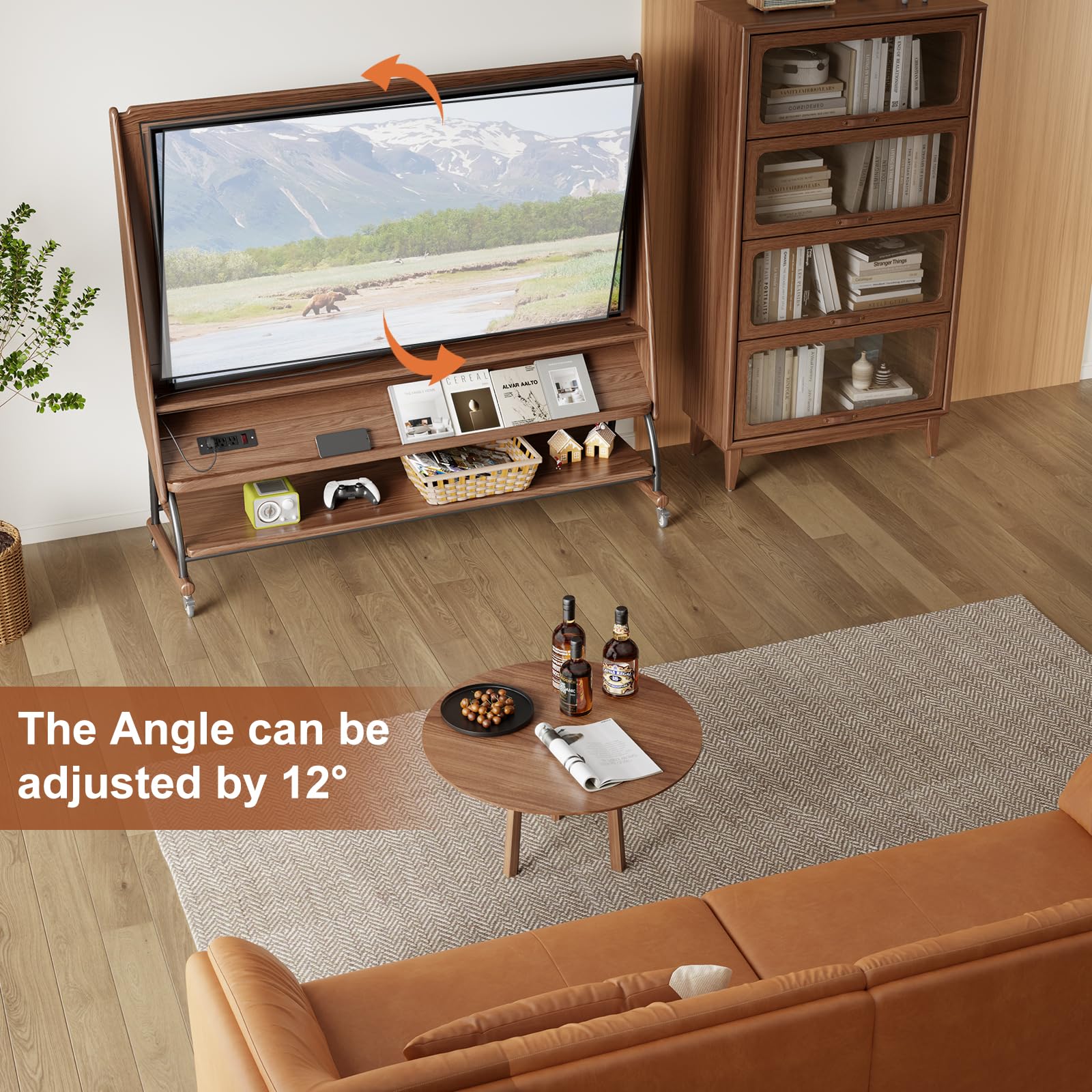 This solid wood rolling TV stand combines mobility and functionality for modern living spaces. Designed to accommodate 40-60 inch televisions, this entertainment center features smooth-rolling wheels and height adjustment capabilities for optimal viewing comfort.