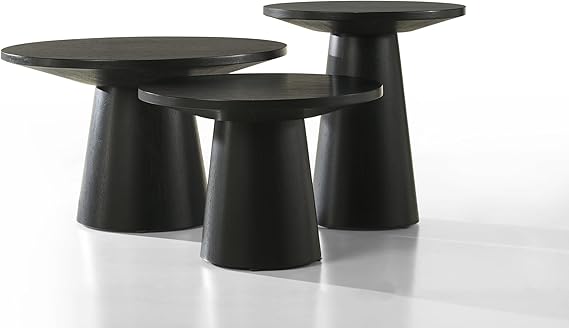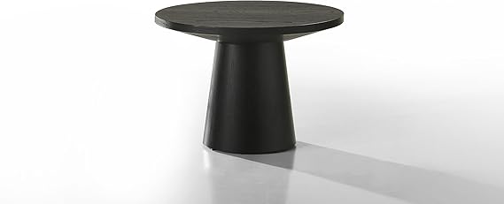 This modern round end table combines contemporary design with traditional craftsmanship. Featuring a captivating natural wood grain surface with a rich ebony black finish, this elegant side table adds sophistication to any living space.