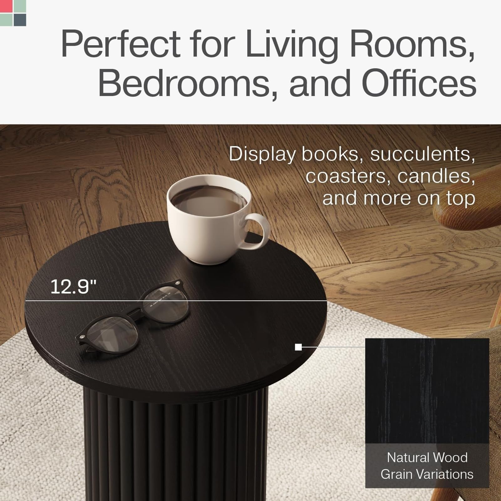 Round Fluted Accent Side Table - Oak End Table for Living Room & Bedroom