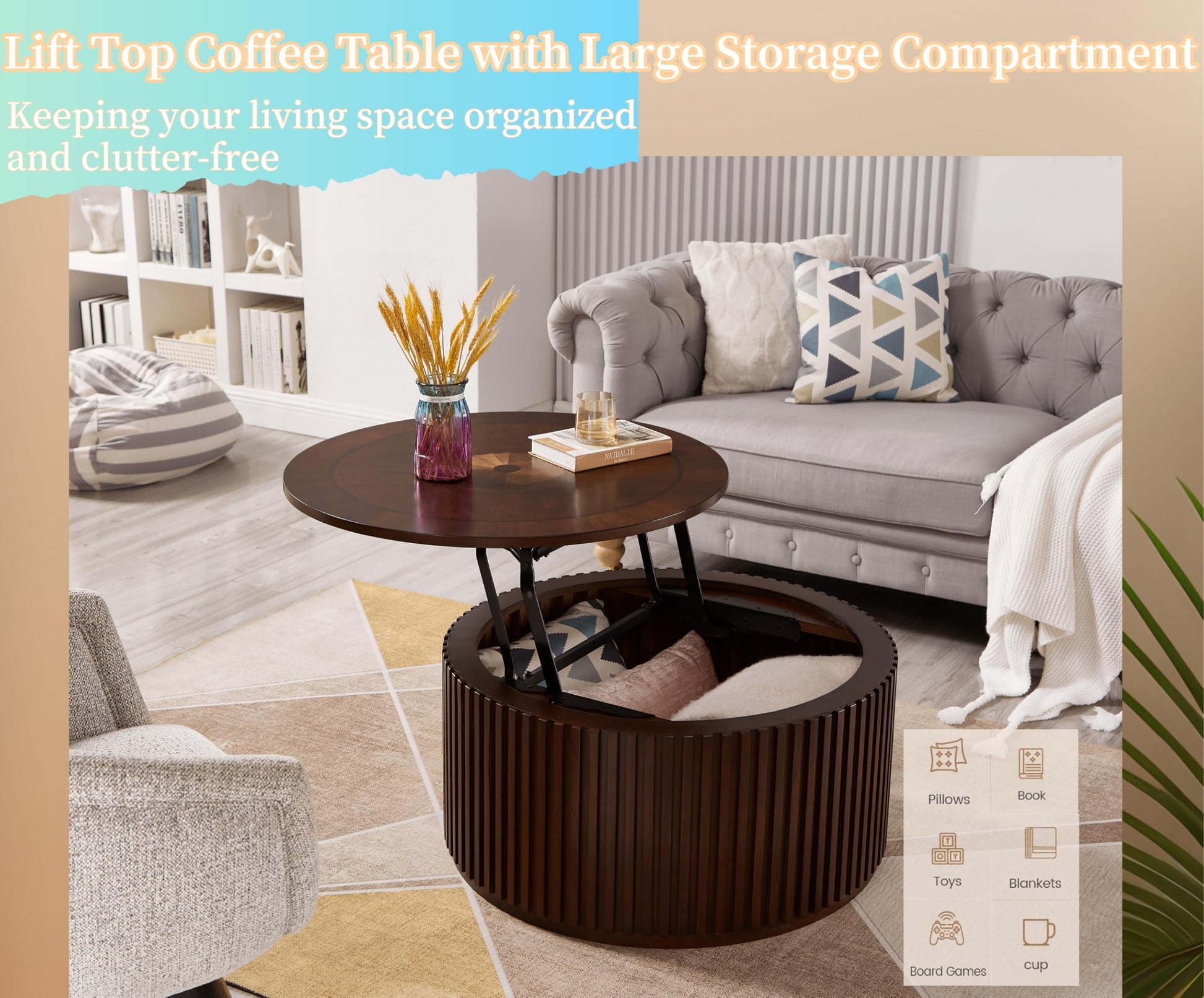 Perfect for living rooms, family rooms, offices, or any space where you need functional furniture that doesn't sacrifice style. The hidden storage keeps your space tidy while the lift-top feature adapts to your daily needs.