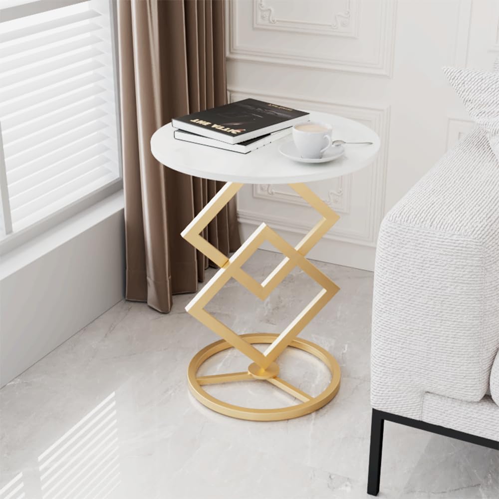 Elevate your living space with this elegant round side table featuring a luxurious marble desktop and striking metal base. The perfect blend of modern style and minimalist design, this versatile accent table brings warmth and sophistication to any room.