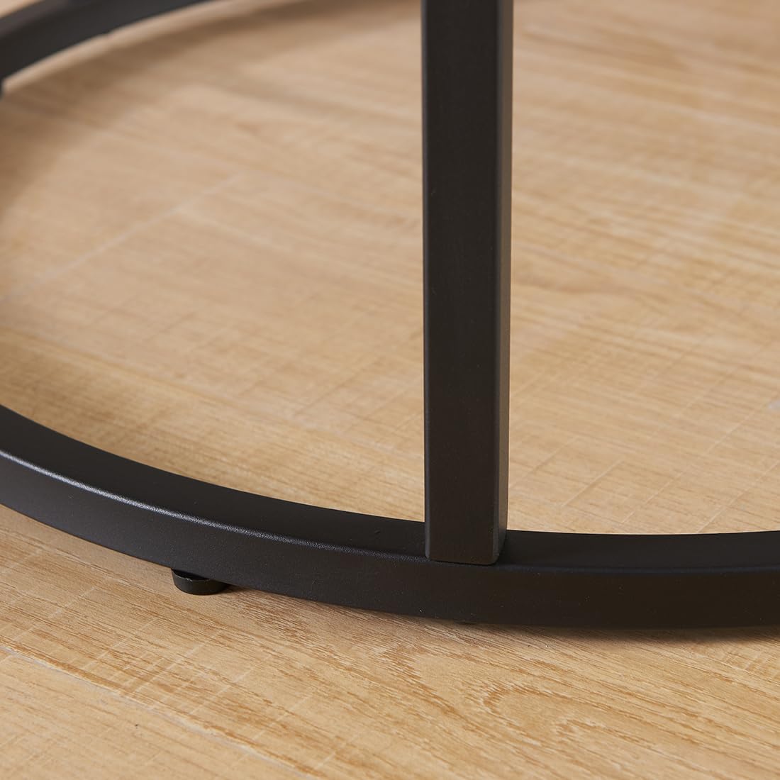 Transform your living space with this modern round nesting coffee table set. Featuring a sophisticated grey wash oak wood finish paired with a sturdy metal frame, these industrial-style accent tables offer both functionality and aesthetic appeal.