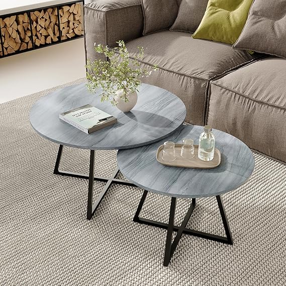 - Set of 2 round nesting tables for versatile use