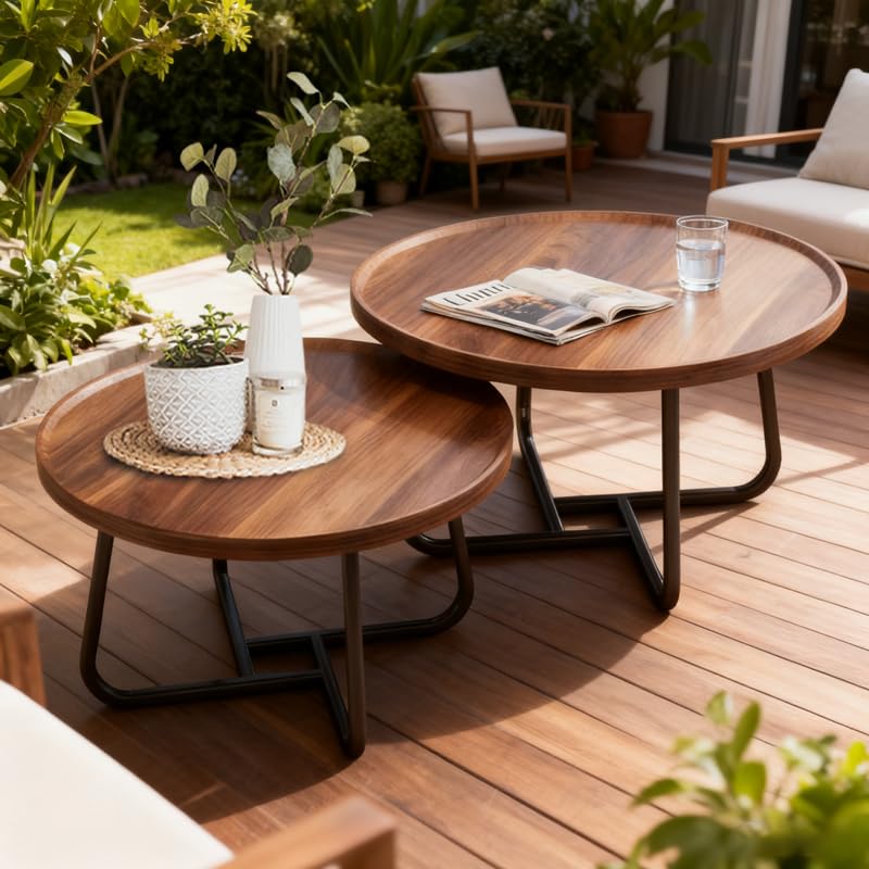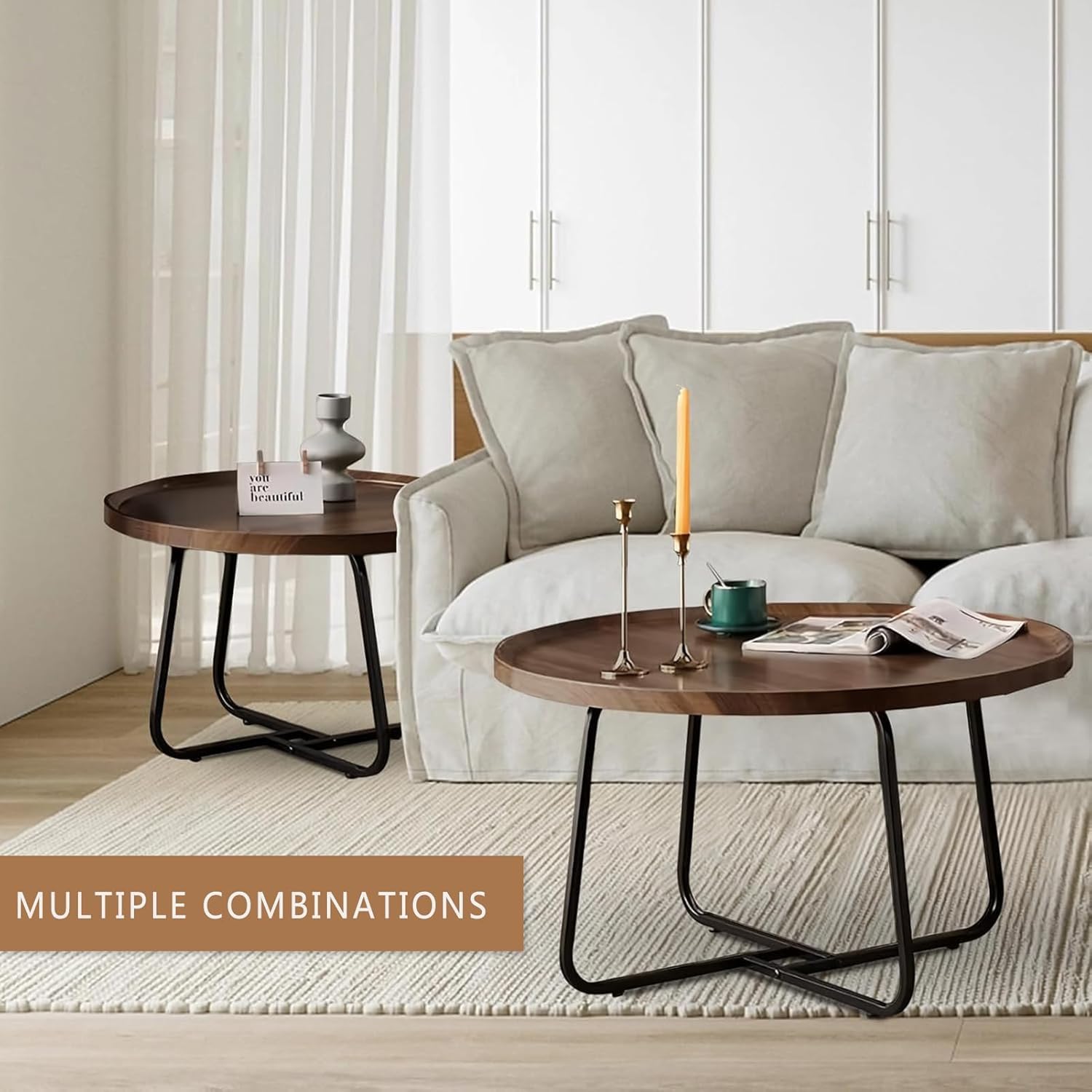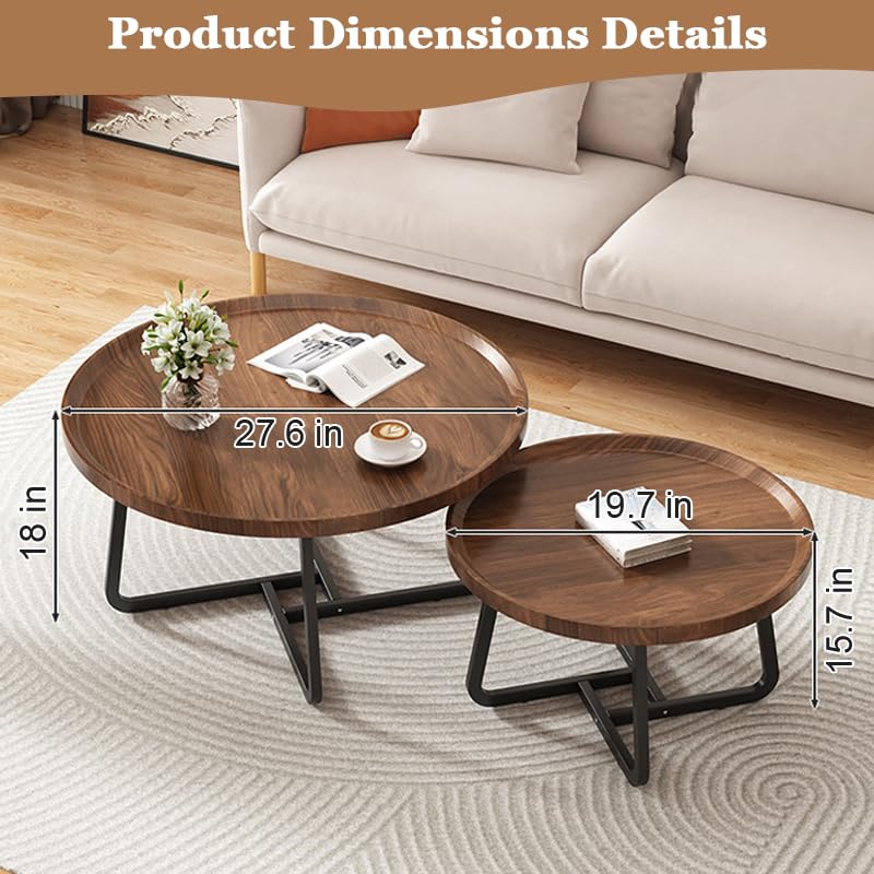Transform your living space with this elegant round nesting coffee table set. Featuring a rich walnut finish and distinctive fluted design, these mid-century modern tables offer both style and functionality. The set includes two tables that nest together for space-saving convenience or can be used separately to create a dynamic layout.