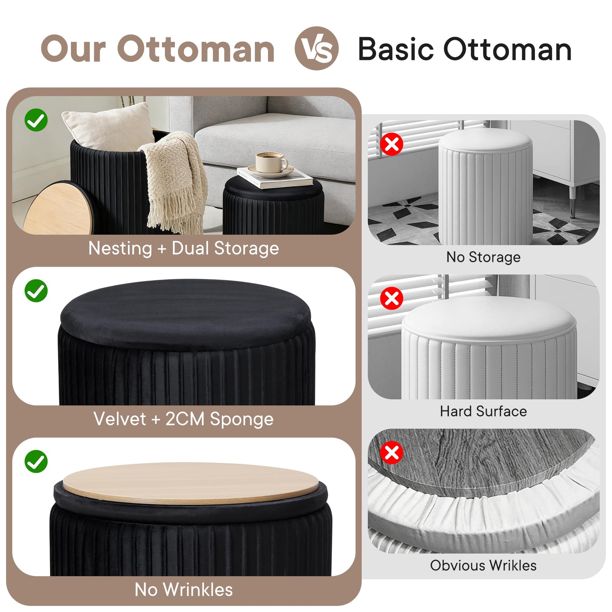 - Multi-Functional Use: Serves as footrest, extra seating, vanity stool, shoe bench, or side table with reversible lids