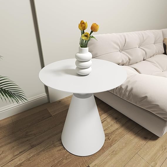 This modern round side table combines farmhouse charm with contemporary design, perfect for small spaces. The aluminum construction ensures durability while maintaining a lightweight profile. Ideal for use as an end table, plant stand, or martini table in your living room, bedroom, or balcony.