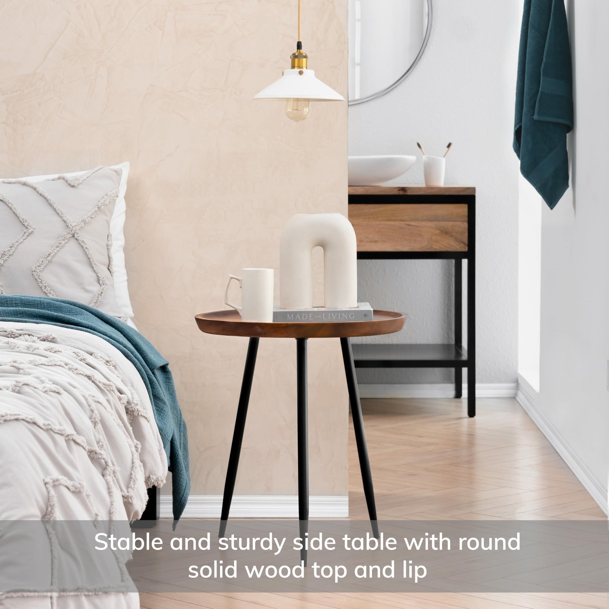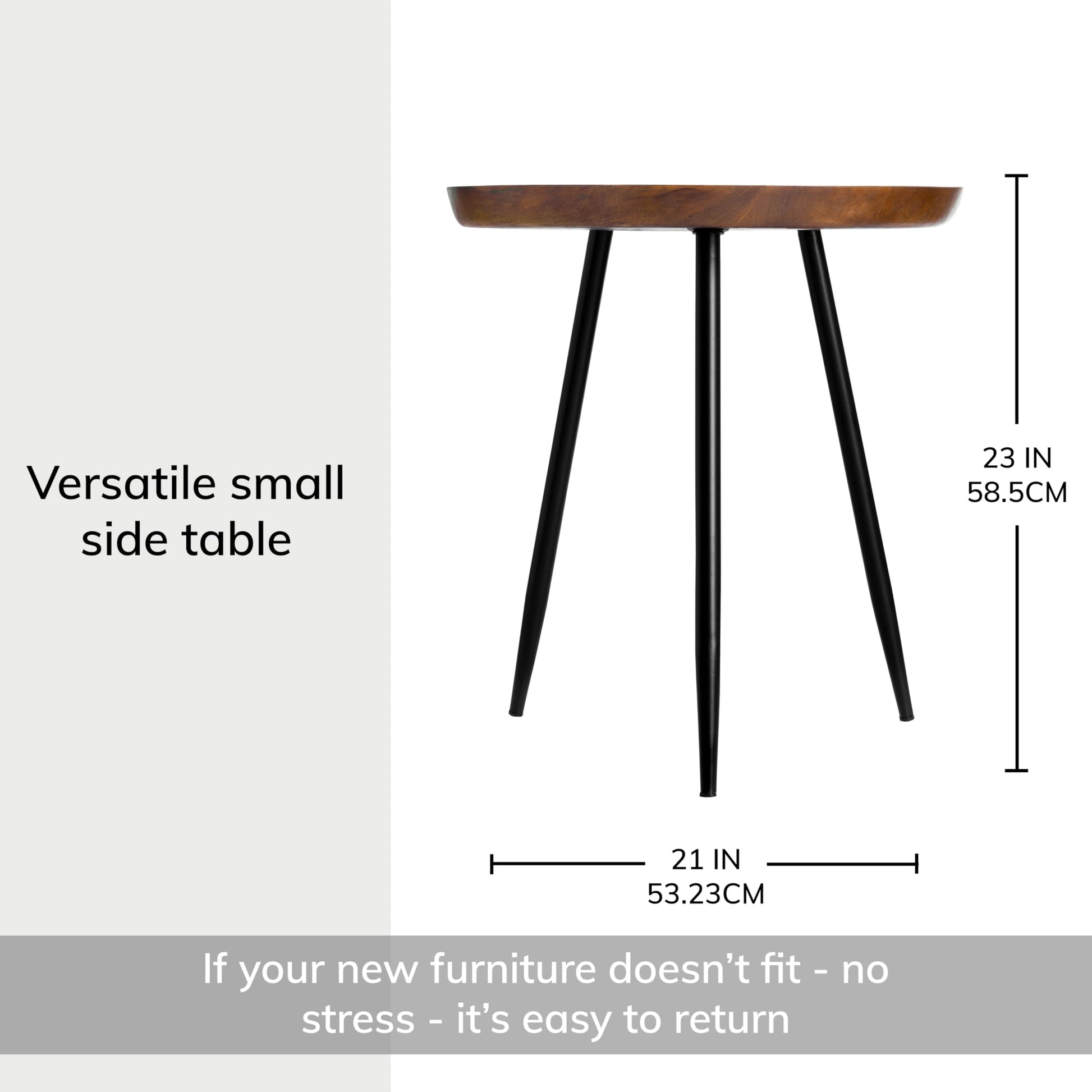 Round Side Table - Walnut Mango Wood with Metal Legs