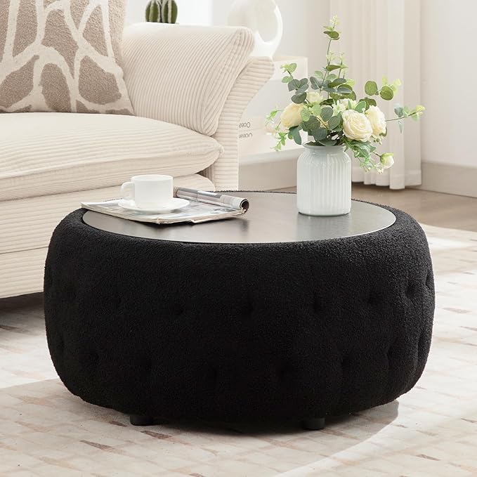Transform your living space with this versatile round storage ottoman that combines functionality with elegant design. Featuring a removable wooden tabletop and generous storage capacity, this piece serves as both a coffee table and a comfortable seating option.